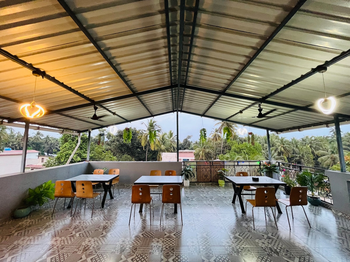 Nagaon Badami beach is very near, 1.85 km i.e. 10min drive or 25min walk from our property This stylish and unique place sets the stage for a memorable trip to have a pleasant weekend. Highly recommended for small groups and family getaways. Very friendly staff and the best part is the homely meal. The rooms are very cozy and you can have a nice gala evening with your friends and family at the lawn in the evening. We have large Deck with each room over looking party Lawn and pool.
