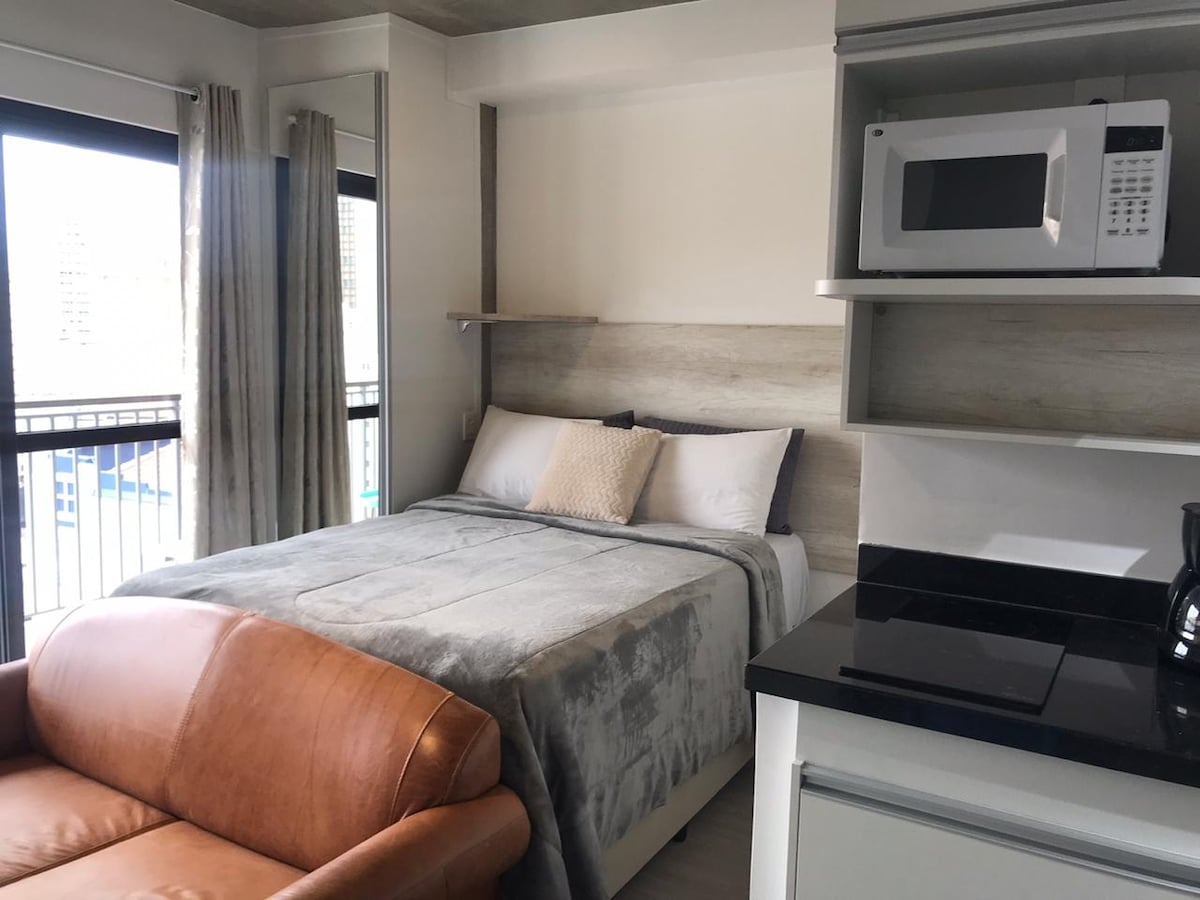 Sobre o espaço: À cerca de 5 min andando do Allianz Parque, ao lodo de shoppings, comércios e restaurantes, o studio conta com todo conforto, comodidade e segurança que você precisa. Dispomos de cozinha compacta com fogão por indução, microondas, cafeteira nespresso, cama com colchão Emma, smart TV, ar condicionado e outros. Portaria 24hs, piscina, academia, coworking, lavanderia, bicicletário e louge.