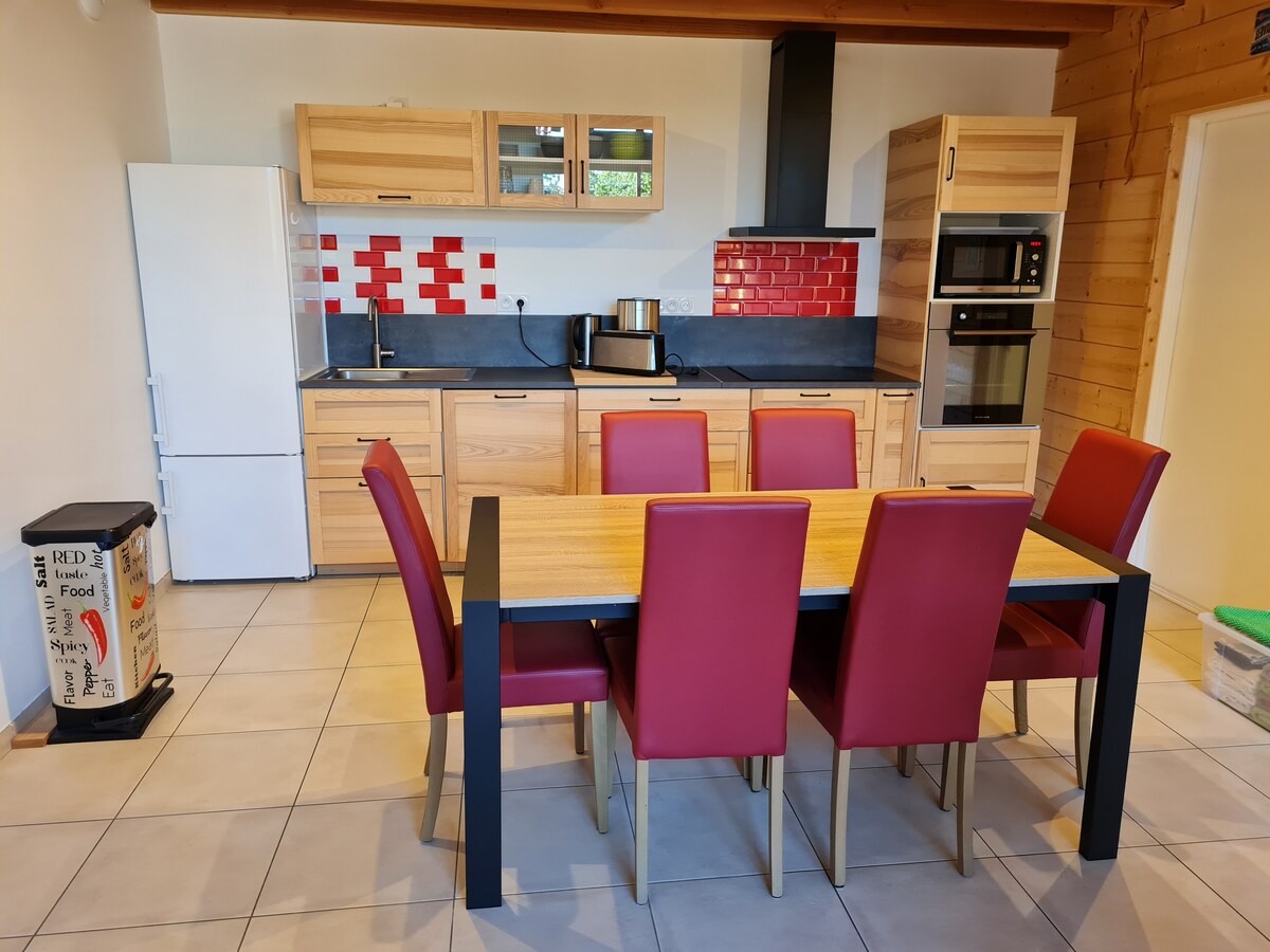 Hej, Vi erbjuder dig att hyra ecoloft, ett rymligt utrymme perfekt för en stor familj eller en grupp vänner (lakan och handdukar ingår). Den ligger på 2:a våningen, ovanför en annan lägenhet som bebos av min dotter och hennes lilla familj (så inga fester möjliga) Du kommer att vara här som hemma i en varm och avslappnad atmosfär i hjärtat av naturparken Volcans d'Auvergne (vandring, skidåkning och sjöar) och mycket nära Clermont-Ferrand. Du har tillgång till den gemensamma trädgården.
