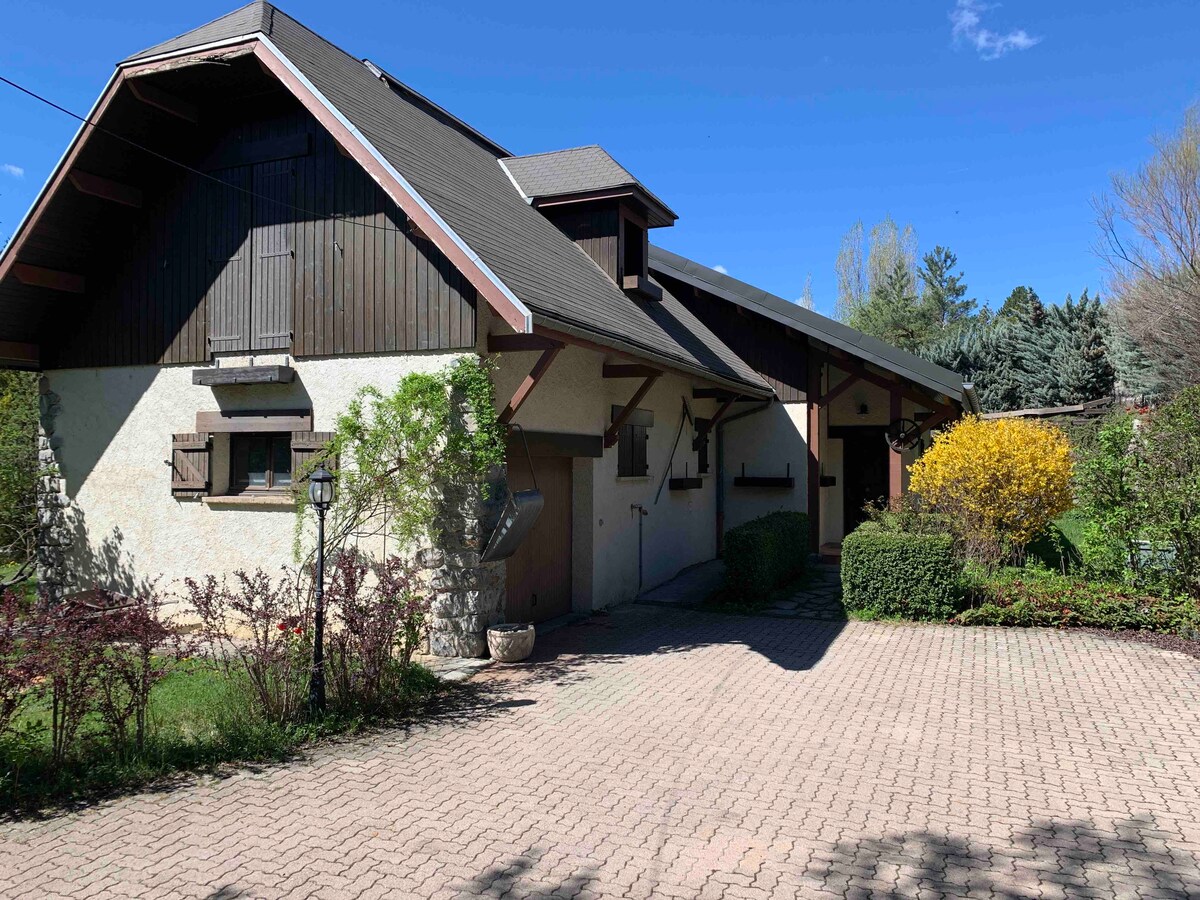 Denna fantastiska 200 m² stora alpstuga, med hisnande utsikt över bergen, belägen i en mycket lugn miljö med sin vackra skogsklädda och blomsterrika trädgård, rymmer upp till 12 personer med absolut komfort. Detta hus består av 4 sovrum och 3 badrum, ett perfekt utrustat kök och ett vardagsrum med öppen spis, och kommer att vara det perfekta stället för semester med familj eller vänner. Stängt garage för förvaring av cyklar eller skidor Uppvärmd pool i juli–augusti, 400 m bort: tillgång mot avgift