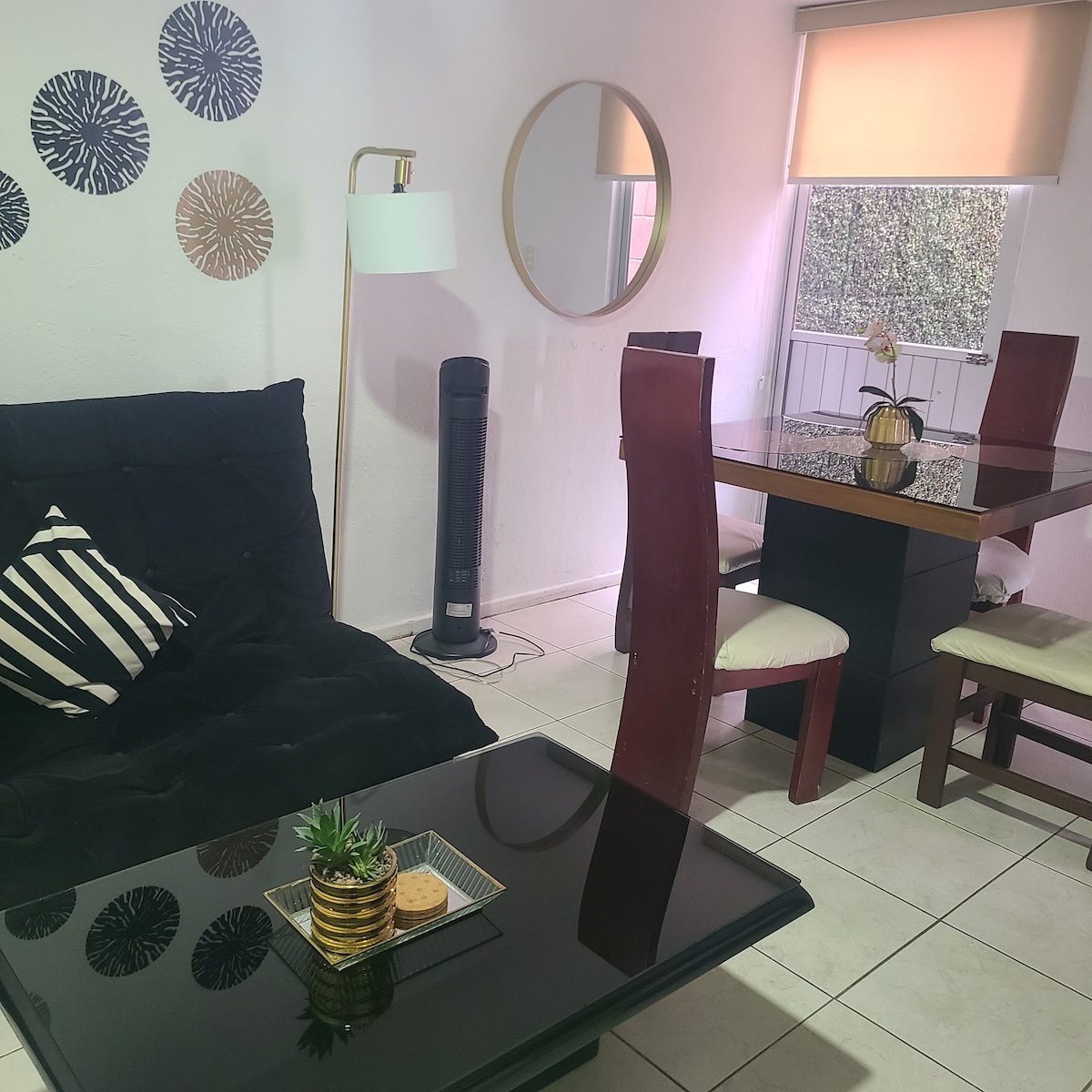 Bekväm och lugn lägenhet i ett kommersiellt område (Zavaleta) med många restauranger, apotek, banker, etc. Strategiskt beläget 10 minuter från UDLAP, Cholula och Angelópolis köpcentrum. Snabb tillgång till viktiga vägar i Puebla som Zavaleta och La Recta. Lämplig och möblerad för en bekväm, lugn och säker vistelse, eftersom den ligger i ett privat område med videoövervakning. Den har internet, TV med Netflix och Amazon Music-konto, samt USB-kontakter.