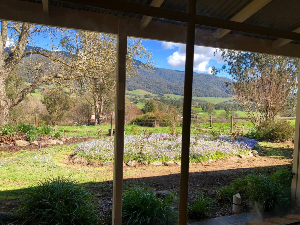 Vi ligger inbäddade i foten av de viktorianska Alperna, nära Bright. Det finns en kristallklar bäck lämplig för öringfiske i närheten. Vår lilla gård består av nötkreatur, kycklingar, två hundar, kastanjer och blåbär och rikligt med australiskt djurliv. Stugan (bedsit) är fristående och privat, med en dubbelsäng och två enkelsängar plus en mycket stor skuggig trädgård med grill och Gazebo. Husdjur är välkomna. Vi välkomnar internationella resenärer till detta vackra område.