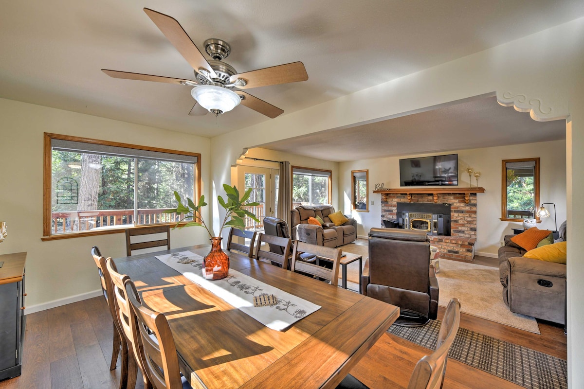 Glöm alla vardagliga bekymmer i detta rymliga och fridfulla boende. Nyligen uppdaterad 1200 kvm 2 sovrum, 2 badrum hem inbäddat bland stora tallar, ceder och ekar. Beläget i ett grindat grannskap mellan två pittoreska guldrushstäder med shopping, vinprovning, vandringsleder och sightseeing. Skidområden lättillgängliga för dagsutflykter. Vila eller ät middag på däck med ett glas lokalt vin och titta på de vänliga hjortarna som vandrar förbi och ibland stannar för att säga hej.
