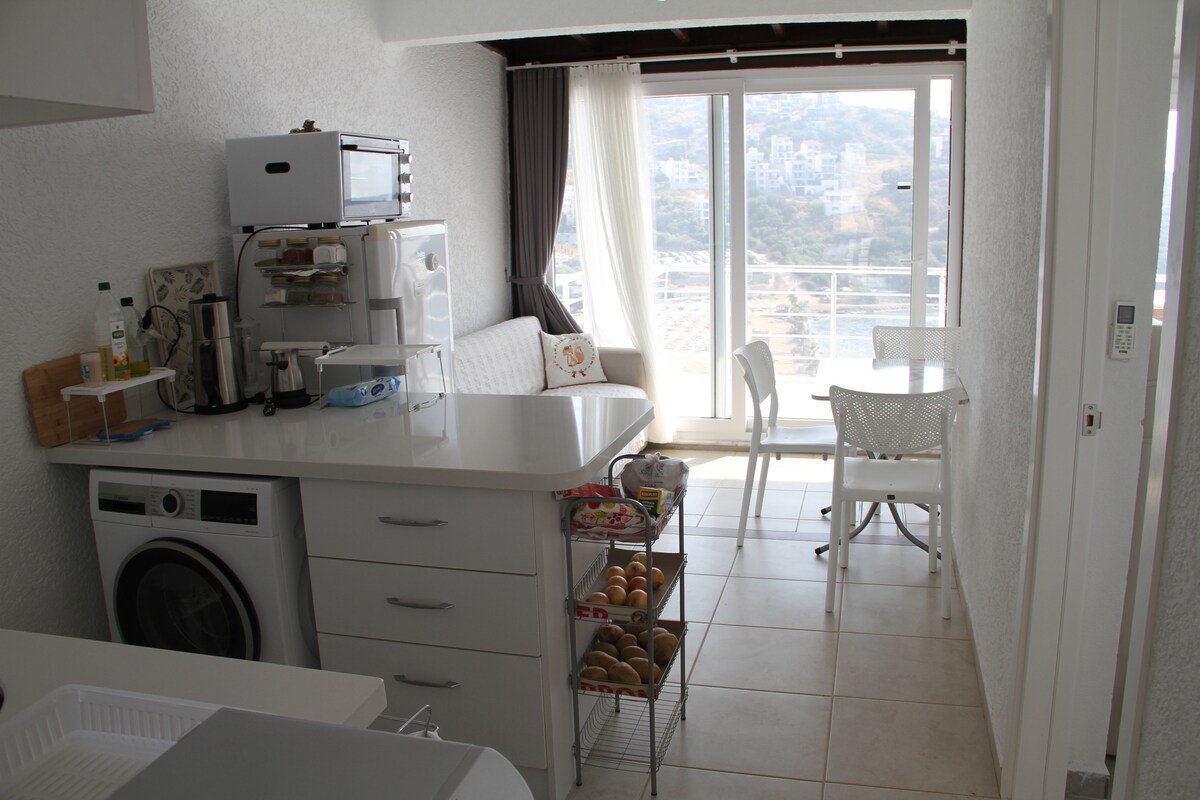 Från vårt centralt belägna boende kan du enkelt komma åt allt du behöver för din semester. Bara 10 steg till havet och stranden :) 20 m till marknad, café, restaurang, bar och strandklubbar. Medusa Disco, Sensation, Ox Bar Beach Club 40 m. Stadstransport finns framför byggnaden. Om så önskas tillhandahålls transfer till flygplatserna (avgift 1500 TL) med vårt fordon. 150 m till bryggan för utflyktsbåtar som besöker Bodrum och Didim-bukterna Du kommer bara att använda din bil när du kommer :) Skicka bara ett meddelande.