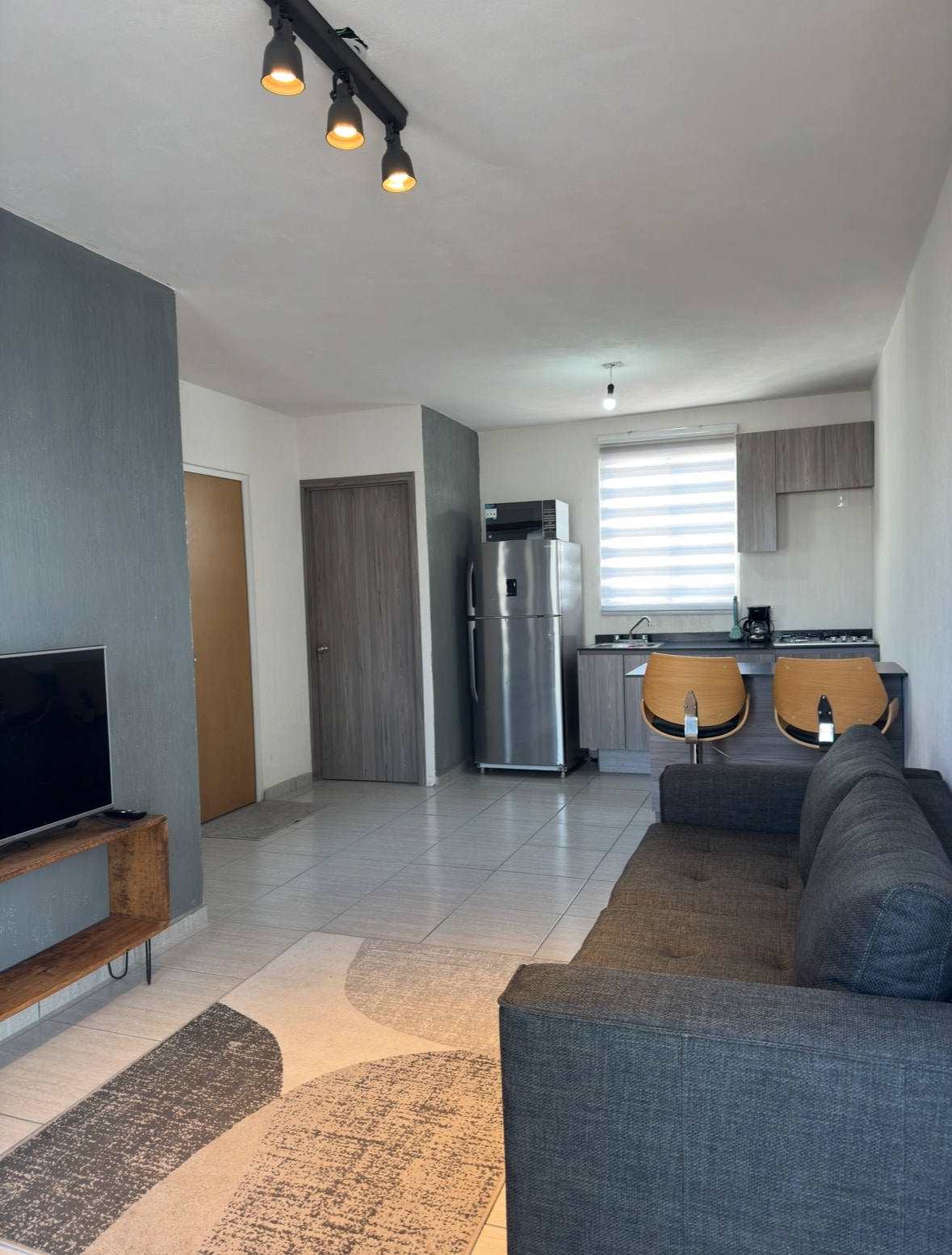 Lägenheten har luftkonditionering i det STORA SOVRUMMET. Tjänsten avtalas separat. Ytterligare kostnad på 99,00 $ pesos per dag. Koppla av i detta lugna och eleganta utrymme. Helt ny med två rum. Rymligt för 4 gäster. Med möjlighet för en 5:e [mot en extra kostnad]. Med bekvämligheter [gym, lekrum, arbetsyta, bio]. Utmärkt läge. I södra delen av staden. 5 minuter från torgen och stormarknader. Vi kommer att göra din vistelse trevlig.