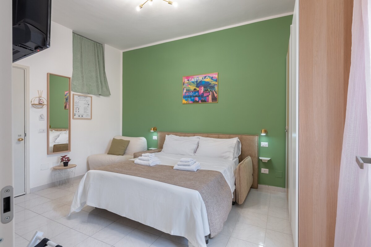 Ljust och självständigt enrumsboende (inom en större struktur) med dubbelsäng, bäddsoffa (och barnsäng på begäran) med luftkonditionering, hårtork, gratis WiFi, smartTV, med eget badrum och kök med induktionshäll. Från 15 maj till 15 september kan du njuta av uteplatsen med pool. Från och med den 1 oktober finns även ett "tavernetta"-utrymme, mot en rimlig extra kostnad, för ytterligare nöjen och stunder av avkoppling.