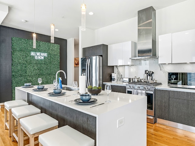 Säg hej till din chica lägenhet med ett sovrum hemifrån. Du kommer omedelbart att känna dig som hemma i din enhet, med en Samsung Smart TV, Sonos, nödvändiga köksredskap och härligt bekväma sängkläder. Denna enhet är utrustad med allt du behöver för att flytta in i din enhet och omedeligen känna dig som hemma. Vi har bekväma sängkläder av hotellkvalitet, eleganta möbler och stora fönster som släpper in allt solsken du kan önska dig.