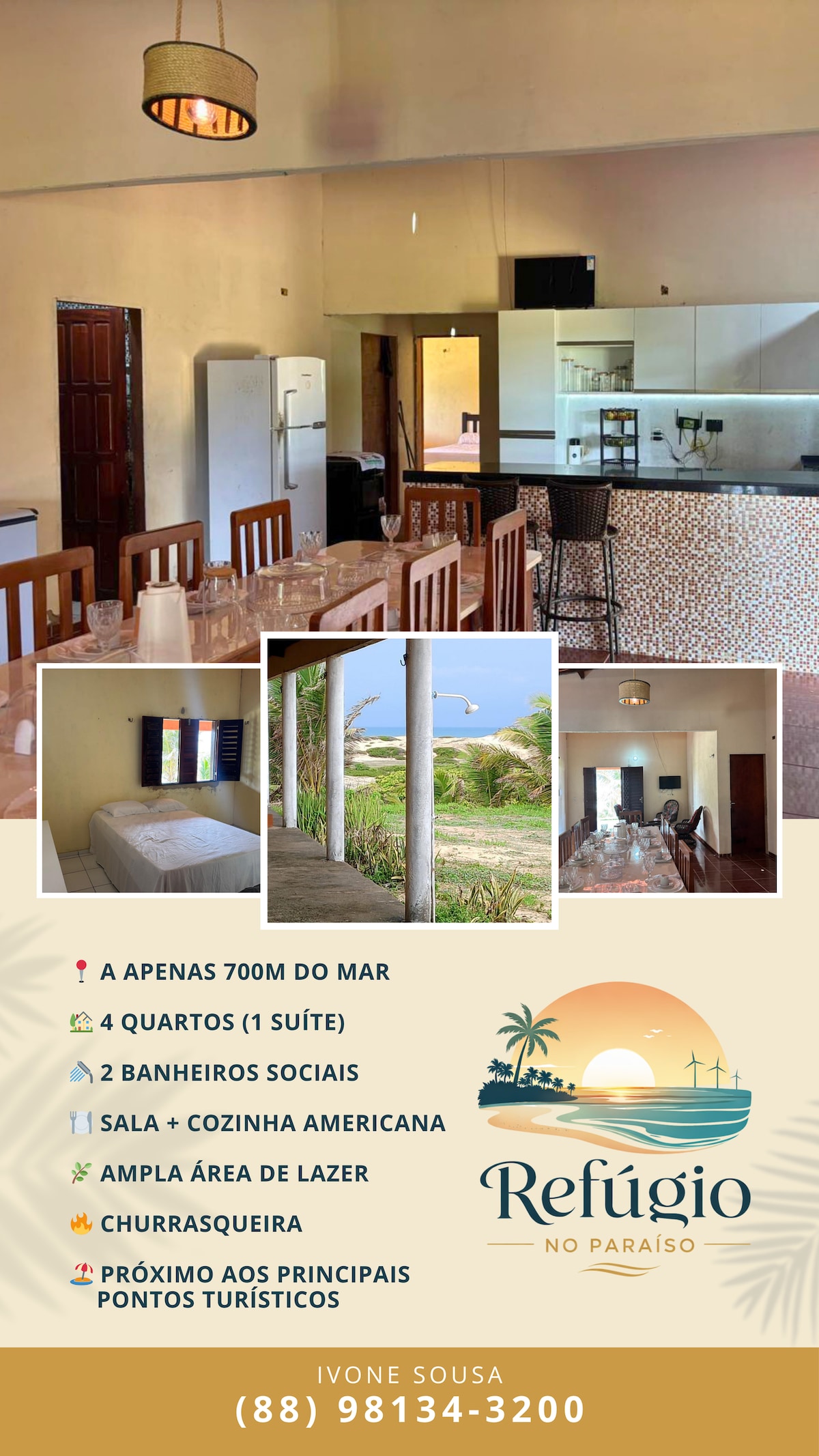 Exklusivt hus vid havet, på en av de tystaste platserna i Icaraizinho, framför de naturliga poolerna som bildas under tidvattnet lågt. Bil ingång endast genom sanden – 4x4 bil rekommenderas Den har 3 sviter, en av sviterna ligger utanför huset, vardagsrum, kök med ö så att du kan laga dina måltider med utsikt över havet, ordentligt utrustad med det som krävs för att känna dig som hemma. Den har egen gratis parkering för 2 bilar
