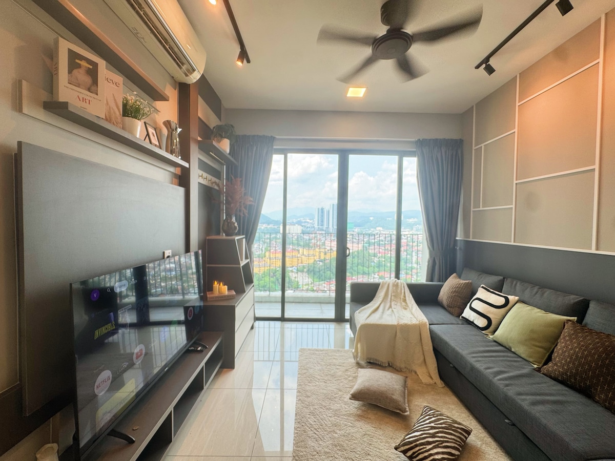 Luta dig tillbaka och slappna av i detta lugna, eleganta boende. Why Panoramic 2BR suite at Lucentia: - Bästa utsikten över KL - Vackert inrett med en rolig anda – Centralt beläget och anslutet till kollektivtrafik - Snabbt wifi - 2 TV-apparater med Netflix och andra - 2 underbara pooler - Familjevänligt med spjälsäng och barnstol - Gym, biljardbord, grillplatser, piano - Garageparkering - Rekommenderas för sovplatser för 4 personer max 6 - LaLaPort köpcentrum och WOW underhållningsgatan är bifogade - Livsmedelsbutik, apotek och biograf etc.