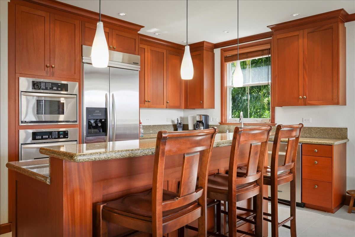 Vårt radhus har ett stort rum med öppen planlösning, fullt utrustat gourmetkök med nya bekvämligheter, 3 sovrum (2 med kingsize-sängar). Perfekt för familjer! Njut av fantastisk havs- och bergsutsikt medan du kopplar av i den mest rymliga planlösningen på Hali'i Kai. Allt under din vistelse kommer att hanteras personligen av oss...ägarna. Inga förvaltningsbolag, inga "vi återkommer till dig". Vårt enda mål är att göra din hawaiiska semester så minnesvärd (och enkel) som möjligt!