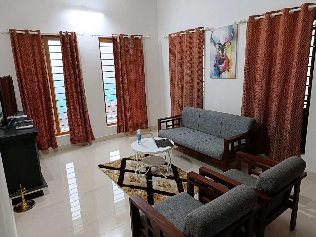 Fly till Vision Home-Ramakkalmedu, en fridfull tillflyktsort i västra Ghats. Beläget bara 500 meter från Ramakkalmedu Windmills, erbjuder vårt hem 4 mysiga sovrum, moderna bekvämligheter, hemtrevlig mat och varm gästfrihet. Perfekt för familjer, vänner eller distansarbetare som letar efter en vistelse nära naturen och viktiga destinationer som Munnar och Thekkady. Njut av solnedgångar, lokala sevärdheter och en verkligt avkopplande upplevelse mitt i Idukki.
