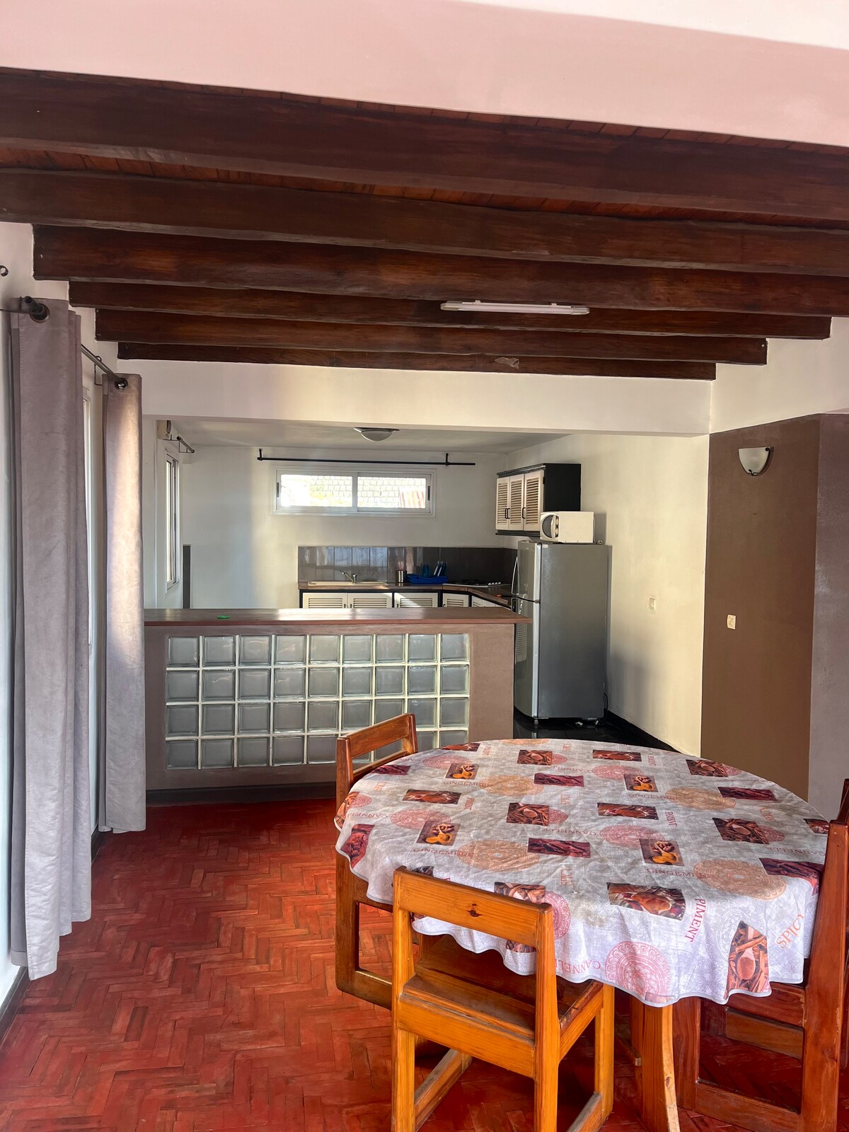 Bostadsområde i centrum av Tana, trevlig studio i en säker, blommig fastighet. En oberoende ingång garanterar lugn och diskretion. 10 minuters promenad från bekvämligheter: butiker, köpcentra, apotek, banker. Du har parkering, wifi, satellitkanal, tvättmaskin och även beställa dina måltider på plats! Studiolägenheten har ett stort rum med en dubbelsäng, en bäddsoffa, en dusch och ett fullt utrustat kök: självkokare, brödrost, kaffemaskin...