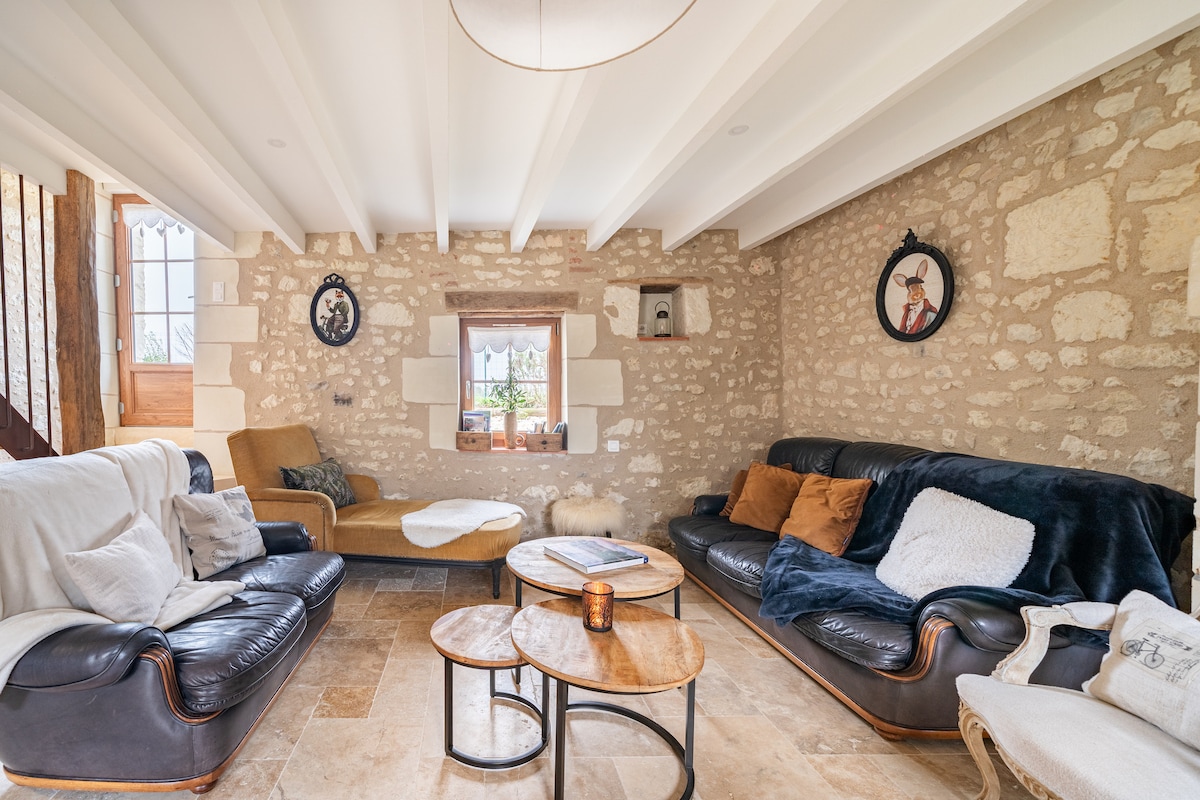 Halvgrotthus med romantisk charm, idealiskt beläget mellan Tours och Amboise inklusive: - Troglo vardagsrum: utrustat kök (frukost för vistelser på 1 och 2 nätter), vardagsrum och lounge. - Icke troglo svit: sovrum och badrum, Emma sängkläder 160 cm, duschkabin. - Obegränsat privat wellnessområde med spa, infraröd bastu och massagebord (kroppsmassage på begäran och valfritt med en professionell wellnessspecialist