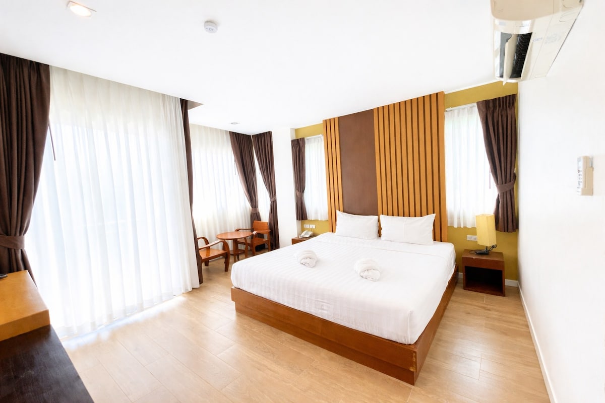 Detta mysiga rum har en balkong, dubbelsäng (eller två enkelsängar) och rymmer två vuxna. Ett barn under 12 år kan också rymmas i detta rum. Stil och enkel sofistikering träffas i detta boendes design, vilket ger ett minnesvärt och härligt utrymme för din semester. Frukost finns tillgänglig i boendet för 250thb per person, se receptionen vid incheckning tack
