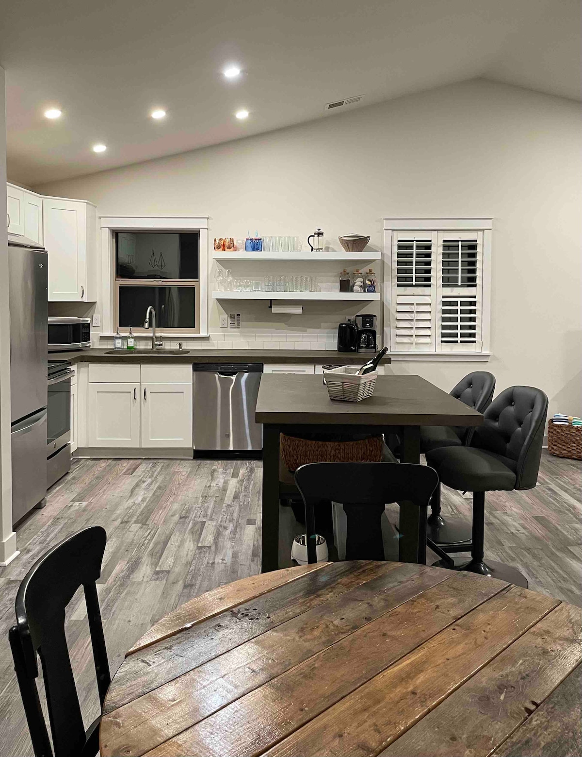 Modernt djurvänligt boende. Pristine, ljust och bekvämt möblerat. Öppet vardagsrum, trägolv, inomhus-/utomhuskaminer, välutrustat kök, tvättmaskin/torktumlare, SNABBT WIFI och 4K-TV-apparater. Fem minuters promenad till sjön, simning, paddling, fiske och golf. Snabb och enkel fem minuters bilväg till Lakeshore Riviera Restaurant & Bar. Koppla av på den främre eller bakre altanen eller mys i det täckta lusthuset bredvid elden. Detta hus har allt - du är perfekt Anderson Island destination.