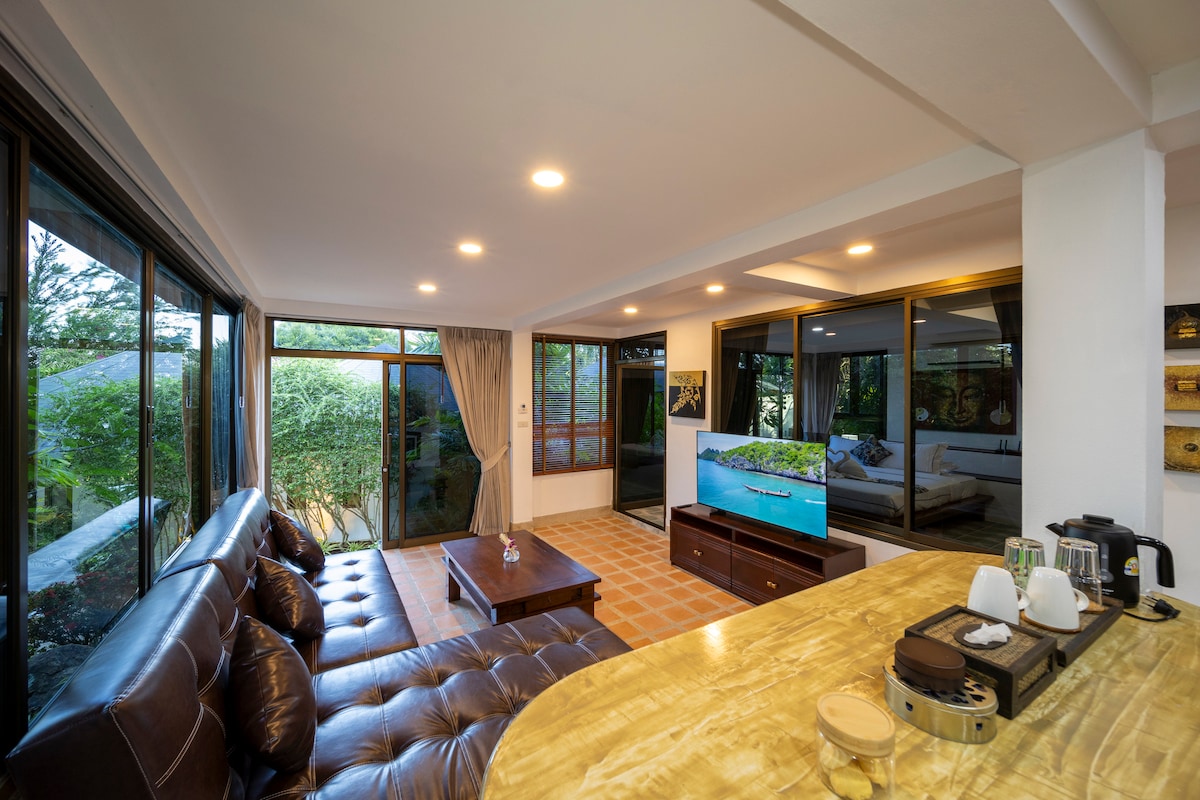 Välkommen till vår Royal Suite Bungalow, en fristad för lyx och elegans, utformad i autentisk thailändsk boho-stil. Förbered dig på att bli förtrollad när du kliver in i denna utsökta tillflyktsort, där varje detalj har noggrant sammanställts för att erbjuda en oöverträffad upplevelse av överflöd.