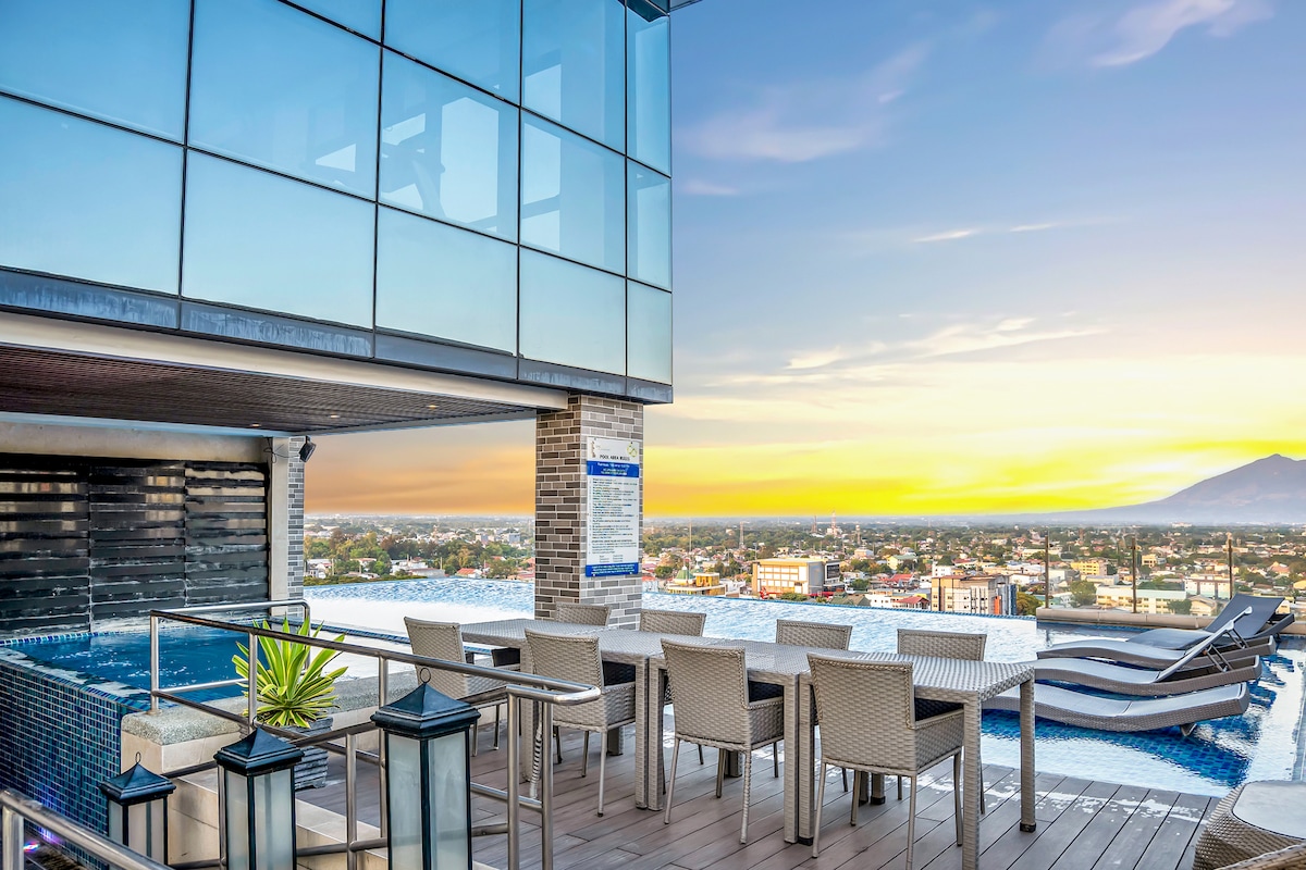 This modern, well-equipped unit is perfect for travellers looking for convenience, comfort and easy access to local hotspots. You will experience a hotel ambiance with spacious balcony that overlooks the stunning Mt. Arayat. You are just few steps away from the vibrant Walking Street and restos and bars. You are also very near SM Clark & Clark Int'l Airport. On the ground floor, you'll find a Convenient Store(7/11), Coffee Shop & Bar. For elevated experience try the Clouds Bar at the roof deck.
