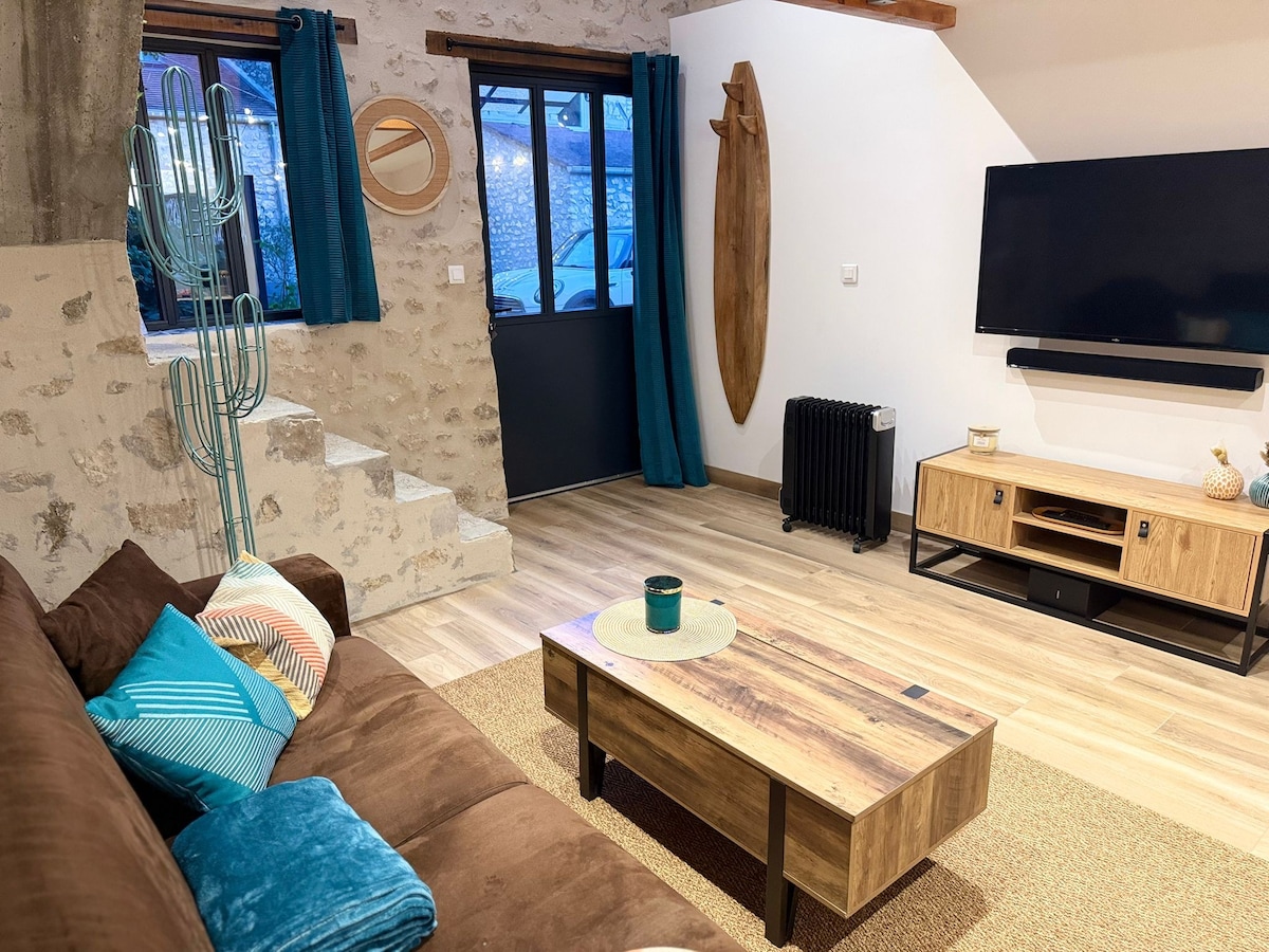 En 85 m² ladugård renoverad 2022 med alla bekvämligheter kommer att vara perfekt för dina helger/familjesemester (1 dubbelsäng 160*200, 1 bäddsoffa 140*190, 1 spjälsäng). Perfekt för ett par med barn. Högst två vuxna. Park/Pool/petanque/gungor/studsmatta/brädspel/barnsand/hängmatta, Remote working wifi, Netflix Smart TV... Alla butiker några kilometer bort. Fester/proffsfoton/fotografering/ceremonier/husdjur ej tillåtna. Inga ytterligare besökare.