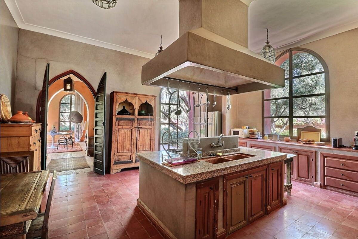Idealiskt beläget vid portarna till Marrakech 15 minuter och bara 30 minuter från flygplatsen, erbjuder vår 280 kvm lyxvilla på vägen till Fez dig en oas av lugn borta från det urbana livet samtidigt som du är nära stadens surr. Denna oberoende och privata egendom är helt dedikerad till våra värdar. När du går in genom dess dörrar går du in i din egen privata fristad. Villan erbjuder en perfekt blandning av moderna bekvämligheter och marockansk charm