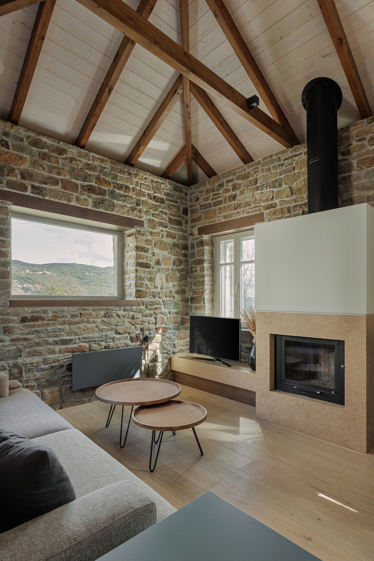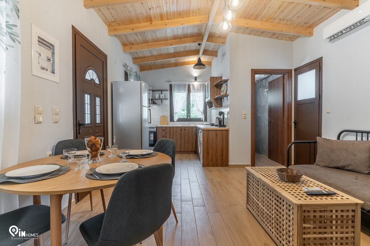 The Loft - En fantastisk, helt ny lägenhet med utsikt över bergen, perfekt blanda autentisk rustik charm med modern komfort. Beläget på översta våningen i ett fristående hus, har denna Loft-lägenhet en öppen planlösning vardagsrum/matplats, synliga träbjälkar och en vacker öppen spis i sten, vilket skapar en mysig, landsbygdsatmosfär för en minnesvärd vistelse. Bara 7 minuters promenad till Pramanta Village huvudgata med kaféer, tavernor, butiker och ett bageri – perfekt för en bilfri semester.