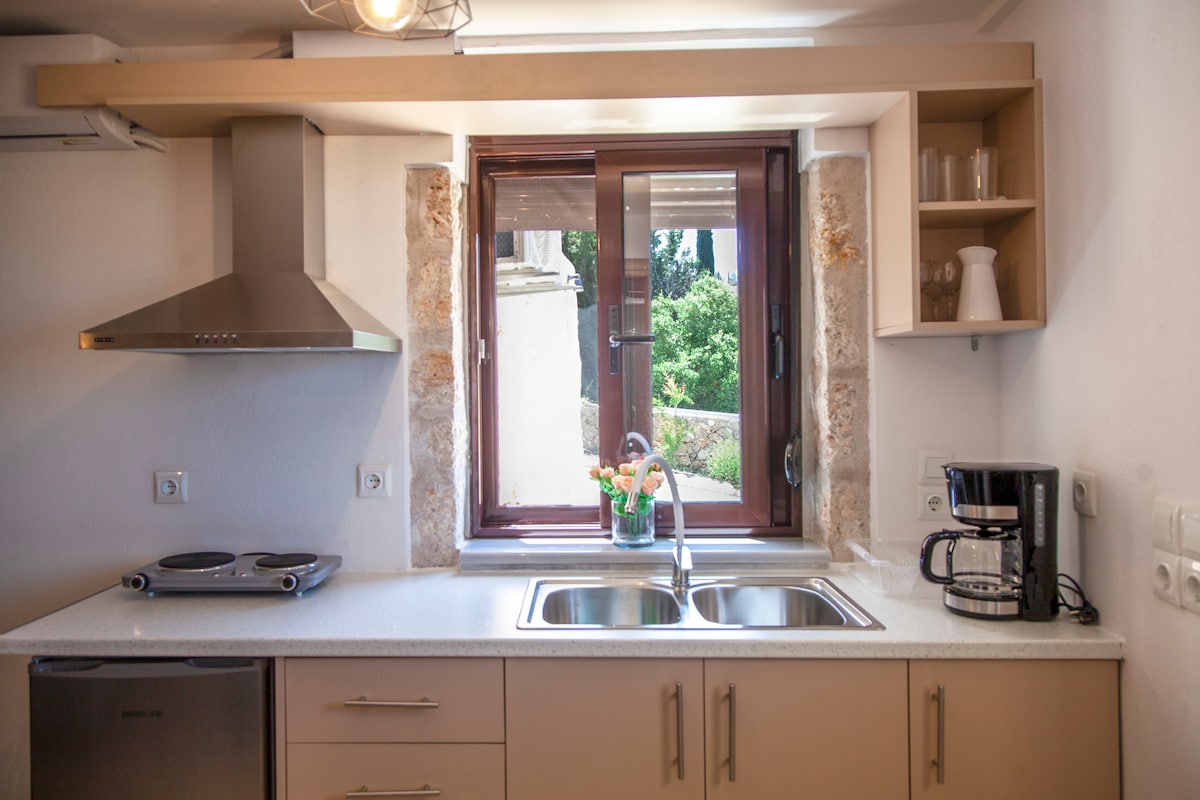 Bara några steg från Joniska havet erbjuder vår lägenhet vid havet komfort, lugn och fantastisk utsikt. Beläget på andra våningen i vårt hem, har detta ljusa och luftiga utrymme en dubbelsäng och en bäddsoffa — perfekt för par eller små familjer. Njut av hisnande solnedgångar och panoramautsikt över havet med utsikt över både Joniska havet och staden Lefkada. Lägenheten ger en lugn, avkopplande atmosfär — perfekt för att läsa, koppla av eller helt enkelt njuta av kustskönheten.