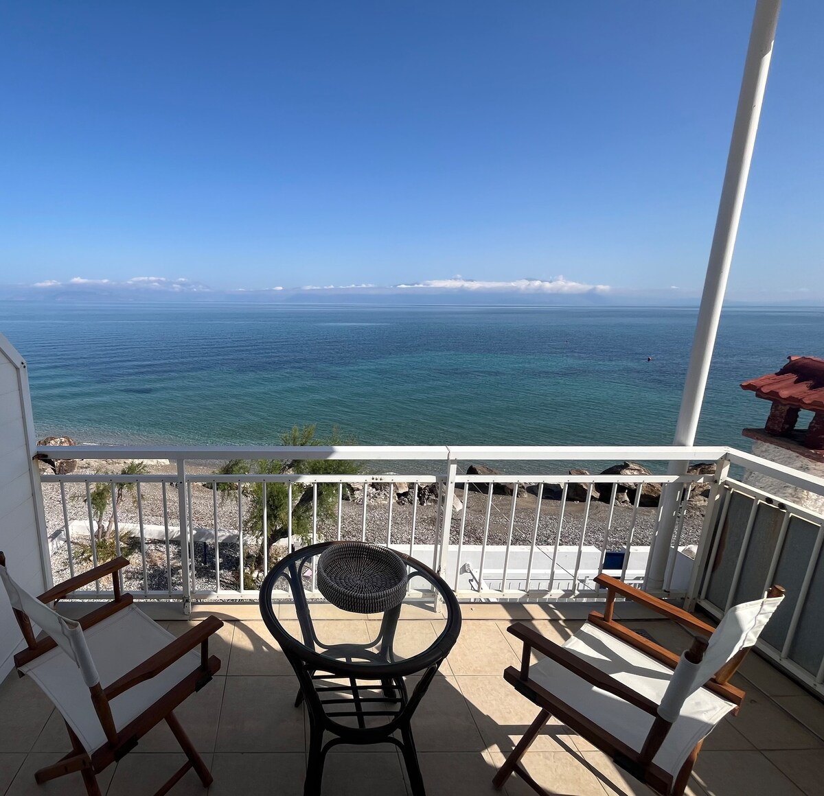 A beautiful spacious beachfront house situated just on the beach of the Corinthian Gulf in the Peloponnese, ideal for both families and couples wishing for a villa by the sea close to the most important archaeological attractions of the Peloponnese and near to the capital of Athens as well !Wireless Wi-fi all year long , brand new air-conditioning in every bedroom and closed garage among the many facilities this beachfront house is offering to guests