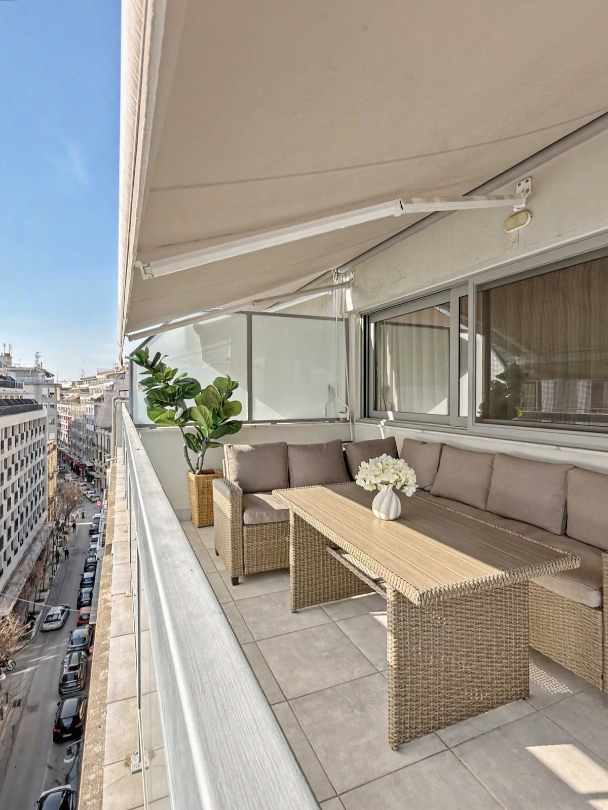 Unik 1 sovrum fullt utrustad lÀgenhet pÄ sjunde vÄningen i en 2020 renoverad byggnad med en hisnande terrass balkong. Höghastighetsinternet, premiumbekvÀmligheter, en lyxig dubbelsÀng och ditt eget Netflix-konto Àr bara nÄgra saker vi erbjuder dig. Lysande, rymliga, med allt du behöver för att njuta av din vistelse i hjÀrtat av Thessalonikis sociala liv, bara 5 minuter frÄn Aristotelous torget och 2 minuter frÄn havet. VÀlkommen och njut av din vistelse!