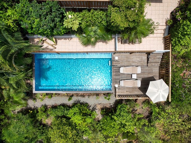 Tillbringa din semester på Villa les Ramiers, där solen följer dig från soluppgången och hela dagen. Boendet är självständigt, utan grannar mitt emot, med ett litet kök och terrass med utsikt över poolen, ett top-deck för att njuta av soluppgången, ett stort sovrum med utsikt över den täckta uteplatsen med sittgrupp med utsikt över havet. Beläget på höjderna med god ventilation och en fantastisk utsikt över Petite Anse. Privat parkering ligger bredvid villan. Välkommen