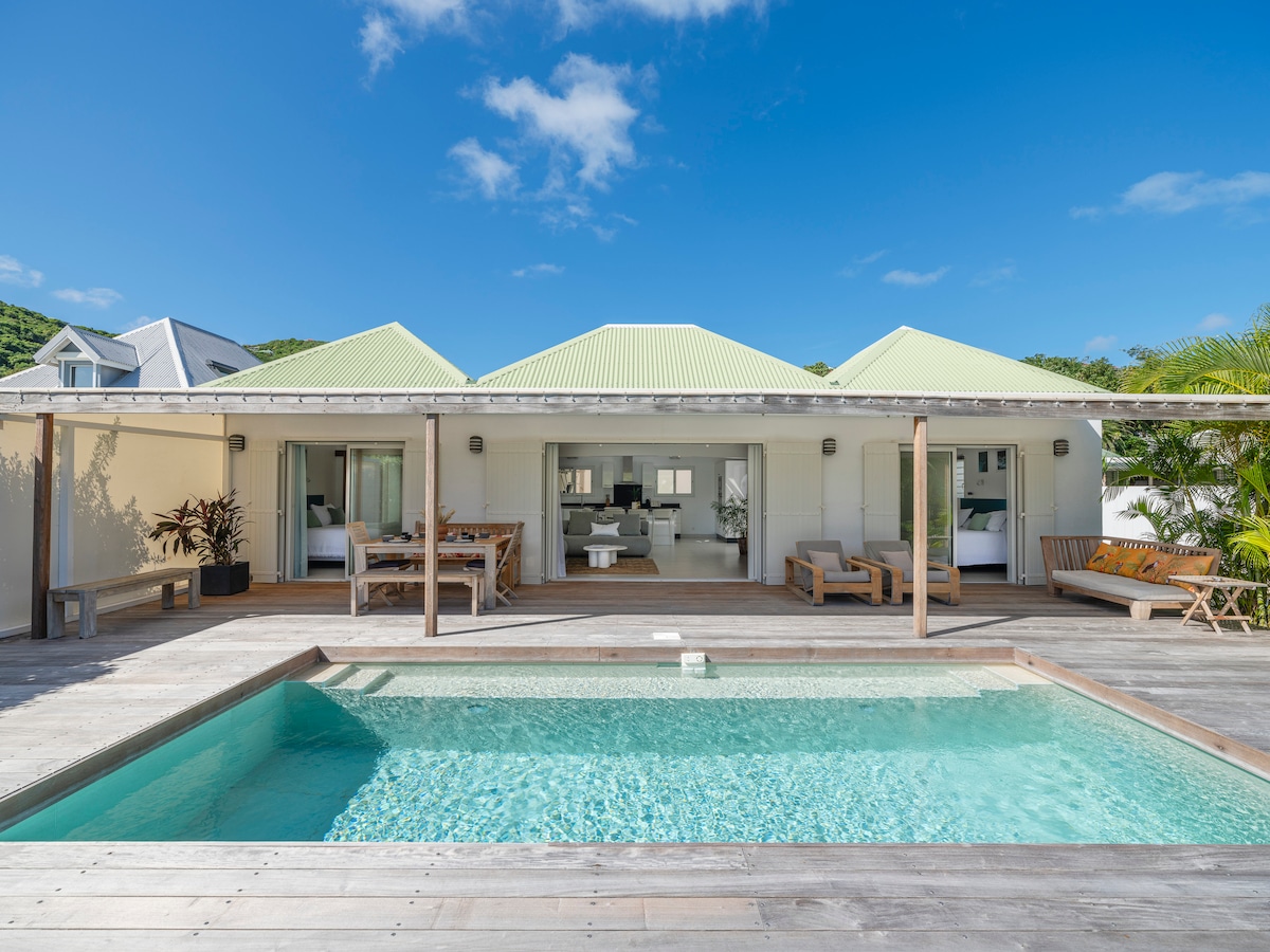 La Case Macalpa totalrenoverades 2023. Dess stil är inspirerad av Saint-Barths historia. Du kommer att förtjusas över dess närhet till havet, vilket kommer att ge dig en oförglömlig semester. Lugn och ro är två av fördelarna med detta bostadsområde. Beläget 5 minuter med bil från Gustavia och flygplatsen, kan du enkelt njuta av butiker och restauranger. Genom att välja Case Macalpa kommer du att få den bästa upplevelsen av Saint-Barth.