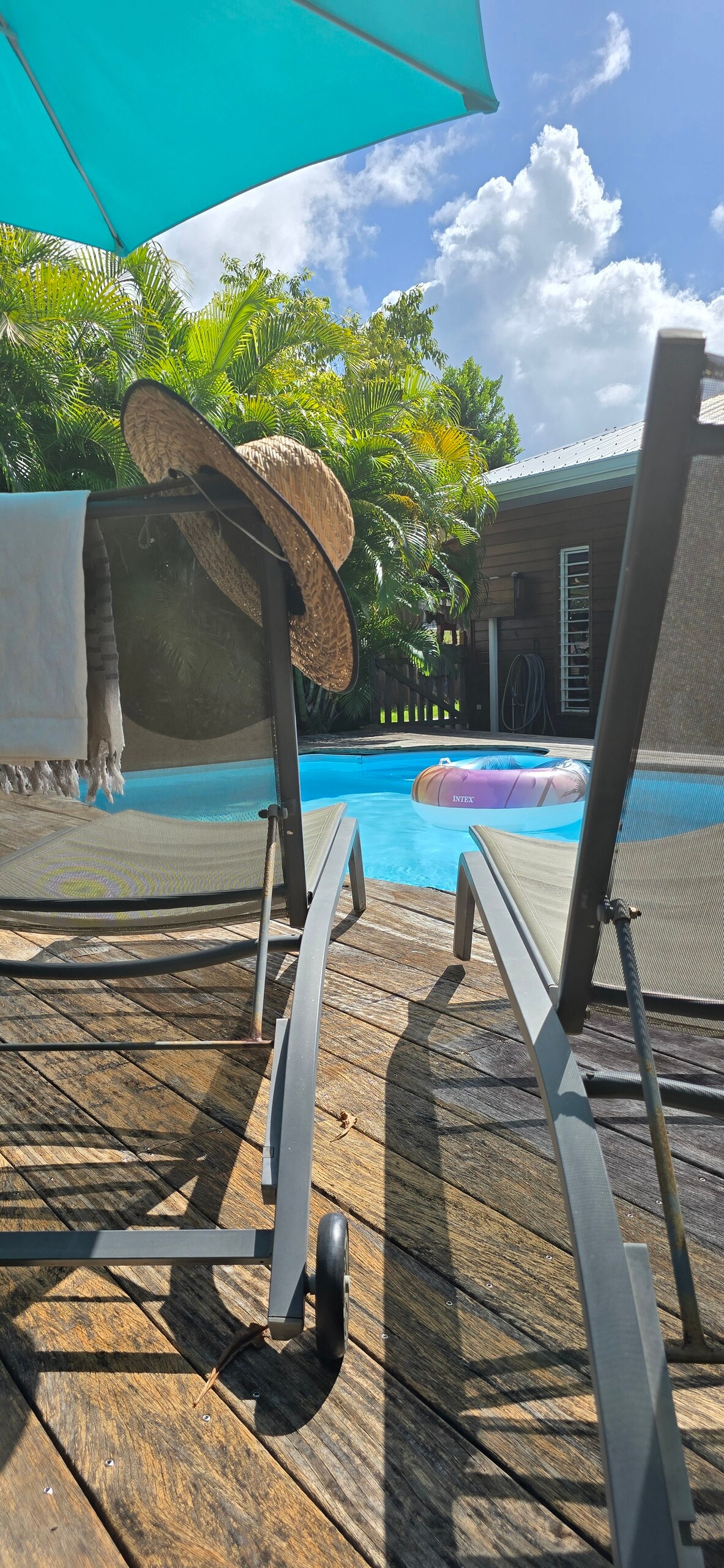 Vi presenterar vår stuga, terrass, privat trädgård, sovplats för 2 vuxna +1 enf I färgerna på Västindien med alla bekvämligheter du behöver för att få ut mesta möjliga av din vistelse Med en yta på 35 m2, en trädgård /terrass på 55 m2, för att njuta av en tupplur i hängmattan i skuggan av eukalyptus, den gemensamma poolen med stugan(2 personer), omgiven av multiplikatorer. Privat jacuzzi Vattentank Privat parkeringsplats Kaffe, TE, örtteer, vatten och rom ordnade för din ankomst