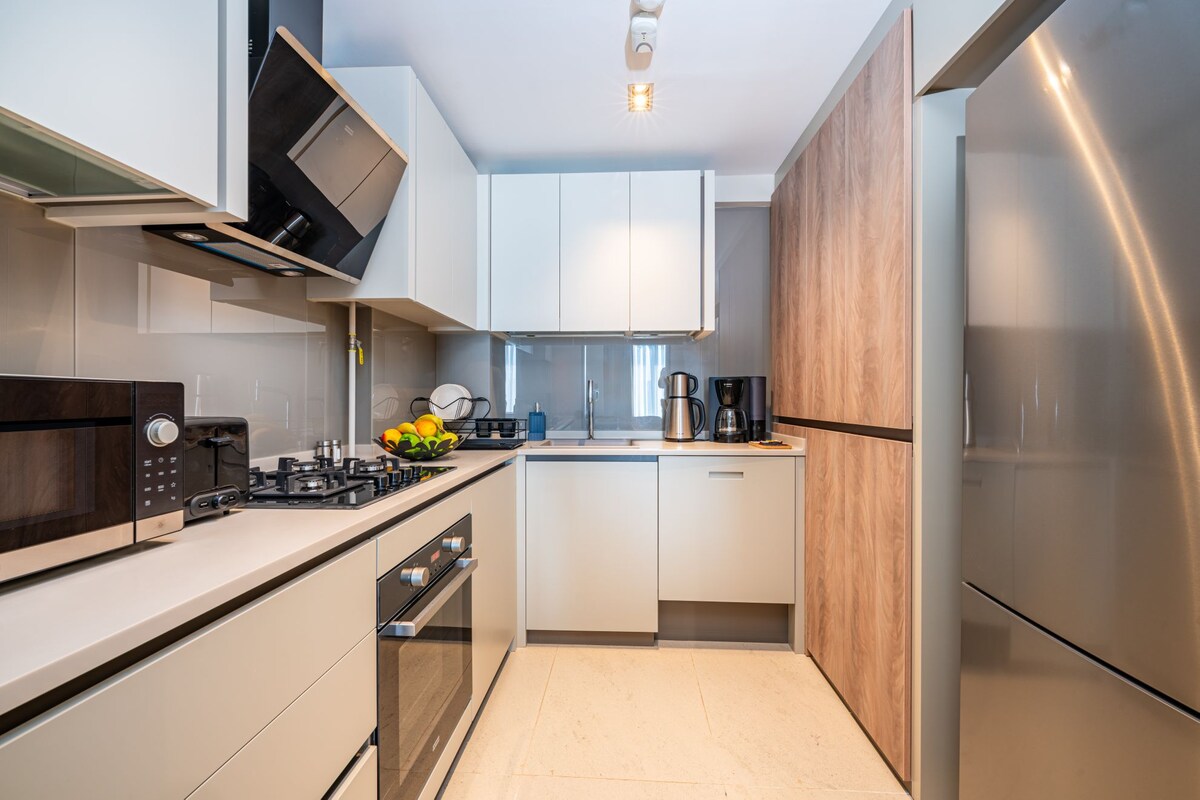 Varje svit har en rymlig layout, sofistikerad inredning och förstklassiga faciliteter, vilket ger en lugn och lyxig atmosfär. Njut av bekvämligheten med speciella te- och kaffemaskiner, mångsidiga rostat bröd och grillmaskiner och tvättmaskiner i varje svit. Håll dig underhållen med våra underhållningsalternativ, inklusive platt-TV och höghastighetsinternet. Vi är stolta över att lägga till personliga detaljer till våra sviter, så att din vistelse är så bekväm och trevlig som möjligt.