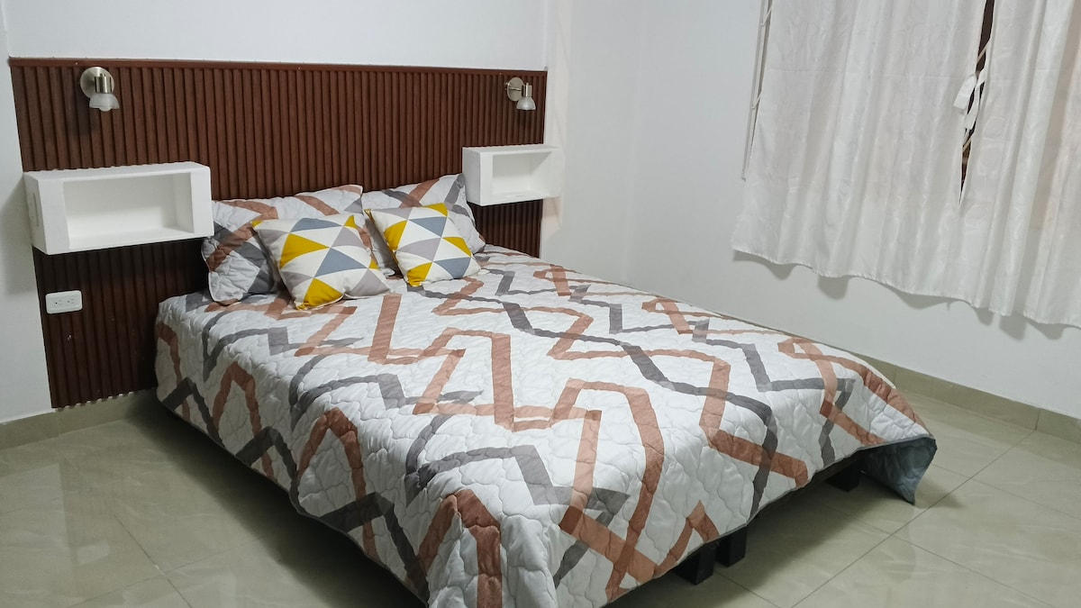 Koppla av med hela familjen på denna lugna plats att bo på, detta boende med jacuzzi inne i huset och en pool i det gemensamma området, du kan lära känna staden Ibarra och dess turistområden, njuta av utsikt över staden och ett lugnt område har varmt vatten, tre bekväma rum, två fulla badrum.