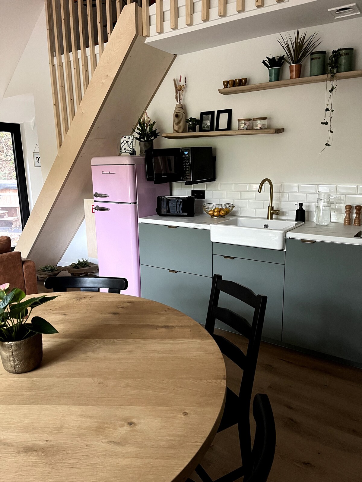 Lägenhet på tredje våningen, utan hiss och en smal äventyrlig trappa. På övervåningen finns det mycket ljus, högt i tak och autentiska trägolv. En loftkänsla med ett öppet koncept av modern inredning. Dessutom ett naturligt flöde till vardagsrummet vardagsrum, med kök(ö), eget sovrum och terrass. Parkering på gatan med parkeringskort (2 timmar) och eller transport till centrum (25’). Njut av din lilla resa och sakta ner.