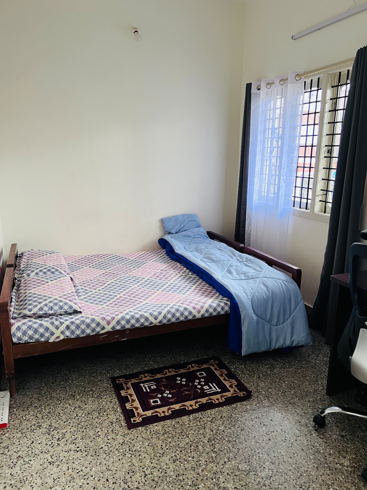 Välkommen till vårt fridfulla och väl underhållna 1BHK-boende beläget på 1: a våningen i en säker bostadsfastighet i Hassan. Oavsett om du är här för att utforska regionen eller helt enkelt behöver en lugn plats för att koppla av eller arbeta, är vårt boende utformat för att erbjuda komfort, bekvämlighet och sinnesro.