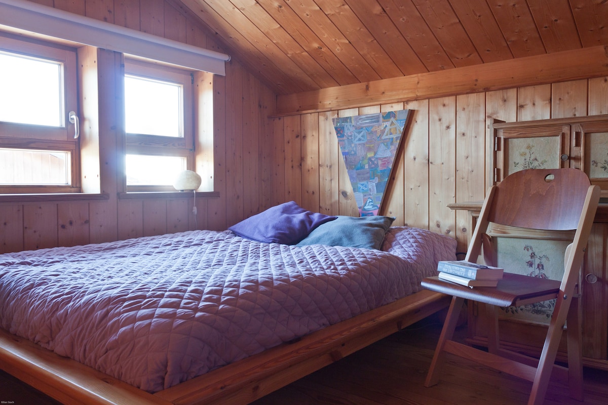 Nah an der Messe München (15 min): Ein wohngesundes massives Holzhaus, wertig, großzügig geschnitten, mit wenigen, hochwertigen Materialien klar und minimalistisch eingerichtet. Ihr sucht etwas in den Alpen? Eine Berghütte? Oder in München? Ein Loft? Hier liegen wir genau dazwischen: Schnell in der Stadt und trotzdem schnell in den Bergen. Das Haus und Duschwasser wird mit Stückholz geheizt, ihr müsst selbst einheizen. Die Lage des Hauses ist NICHT FÜR EINEN BESUCH DES OKTOBERFESTES GEEIGNET!