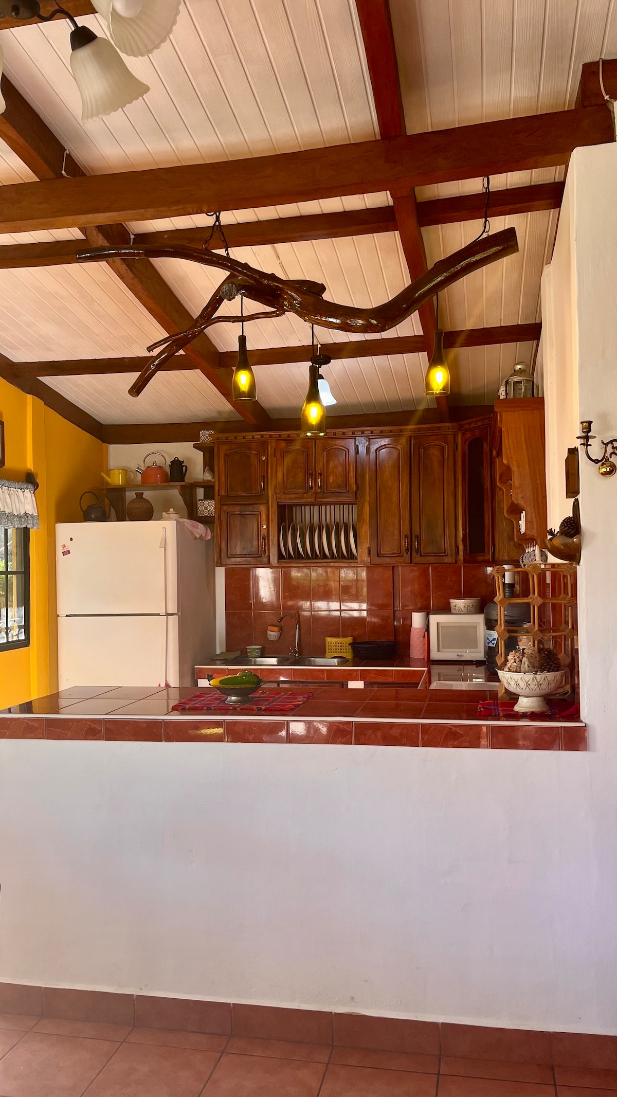 Koppla av med din familj i denna vackra, lugna och mysiga tillflyktsort, som erbjuder ett trevligt klimat, frodiga trädgårdar och fantastisk utsikt över bergskedjan Apaneca. Huset är fullt utrustat och har ett sovrum med en dubbelsäng, plus två ytterligare sovrum, var och en med två enkelsängar - ger gott om utrymme för att bekvämt rymma upp till sex gäster. Boendet är möblerat med kök, kylskåp, kaffebryggare och många andra bekvämligheter, inklusive TV och Starlink Internet.