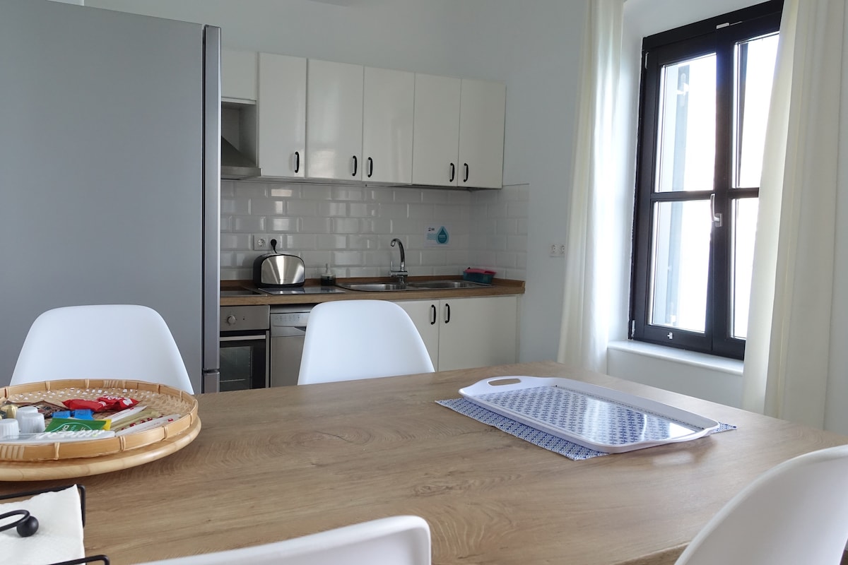 Vetus Vicinato Home 2 offers a luxurious stay with its own street-level entrance and occupies the entire ground floor of the building. This brand-new residence features a spacious garden complete with an outdoor jacuzzi, sun beds, and a patio equipped with a dining area. Inside, the gleaming interior includes a living area seamlessly integrated with a kitchen and dining space. The home also boasts a bathroom fitted with a rainfall shower and a generously sized bedroom furnished with a queen bed.