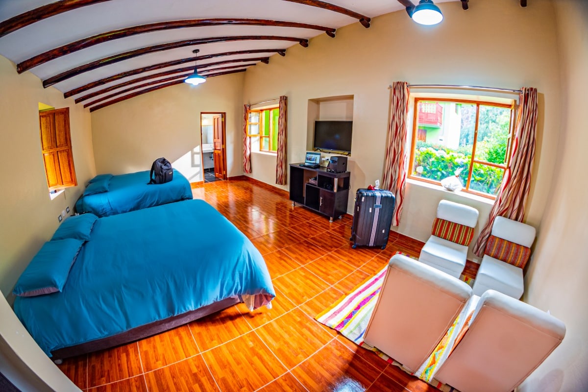 Kliv in i ditt eget sagohus mitt i Anderna. Välkommen till vårt hus. "Tayta" är en 300 m2/3 200 ft2, 4 sovrum/4 badrum villa byggd med traditionell stil och högkvalitativa naturmaterial. Daglig frukost & städning, Wifi ingår! Vi hjälper dig att ordna transport till och från flygplatsen samt turer till de viktigaste platserna i området: Machu Picchu, Inca trail, Cusco city, Ollantaytambo, Pisac, Maras, Rainbow Mountain, Humantay Lake, etc.