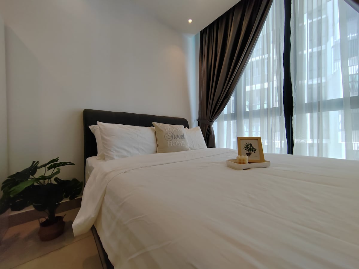 Oavsett om du är på en kort semester eller lång semester, är denna nya lägenhet definitivt ett perfekt ställe att känna sig hemma. I detta unika byggnadskonceptet som representerar en grön och harmonisk levande fristad plats, får du njuta av 5-stjärniga sport- och spelfaciliteter för de aktiva, samt en oas av lugn vid den tysta poolen! > 17 min till LRT | 10 min till Subang flygplats | 35 min till KL | Grabcar Area | Direkt länkbro till Citta Mall > Obegränsat WiFi med hög hastighet | Gratis parkering | 24-timmars säkerhet