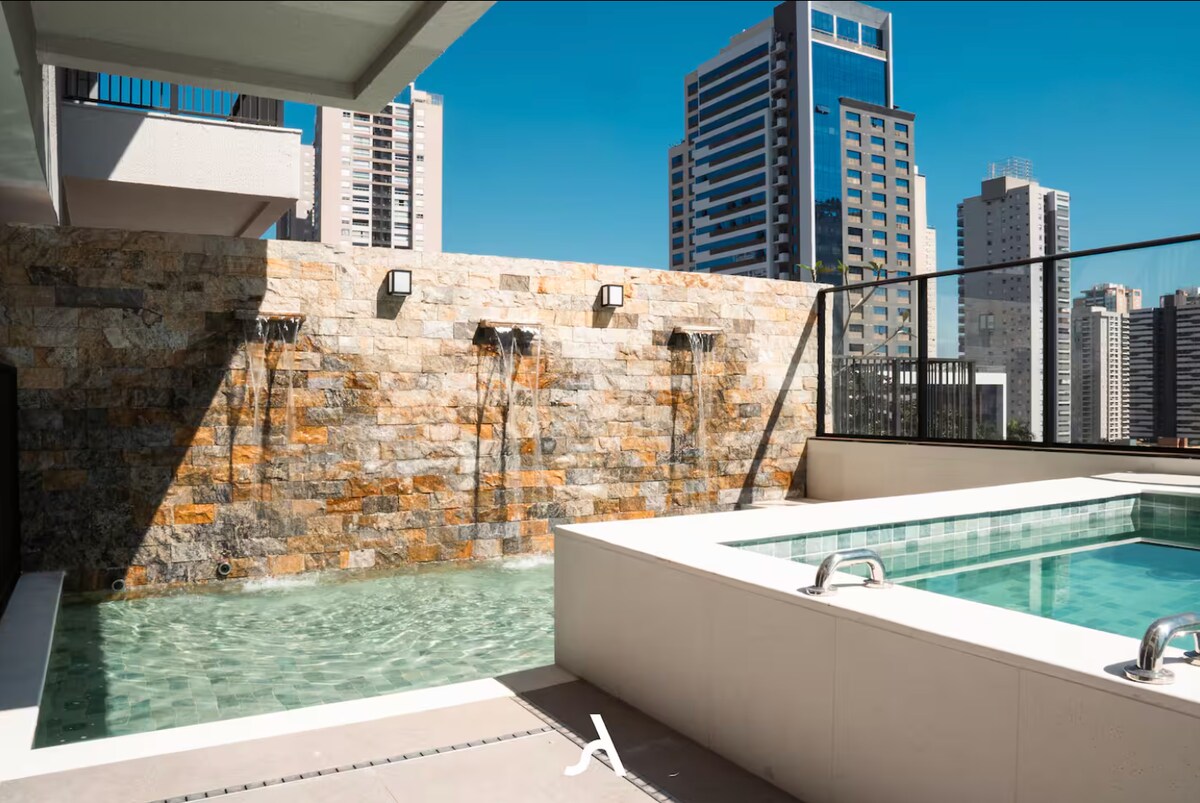 Koppla av i hjärtat av Bueno-sektorn! Din LYXLÄGENHET på Tai Residências är en Urban Resort med anmärkningsvärd arkitektur. Njut av den uppvärmda infinitypoolen, gymmet och jacuzzin SPA på höjderna! Vi har också ett lyxigt gourmetområde på 24:e våningen med panoramautsikt. Enheten är luftkonditionerad, erbjuder höghastighets-Wi-Fi och ett fullt utrustat kök. Professionell incheckning med obligatoriskt säkerhetsprotokoll.