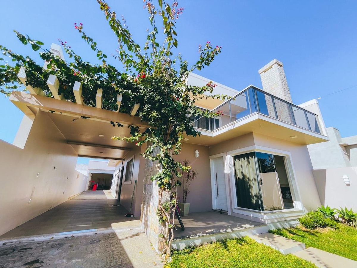 Hus med 3 sviter, grillplats, öppen spis, 4 sängar, med Wi-Fi, modernt, på ett lugnt ställe två kvarter från stranden. Tv med sky, Netflix, Alexa, luftkonditionering i alla rum, i vardagsrummet och köket, hängmatta, kaffebryggare, Nespresso-bryggare, brödrost, mixer, mixer, elektrisk ugn, mikrovågsugn, tvättstuga med tvättmaskin. Välutrustat hus för sommaren, med strandstolar, parasoll, kylbox, vagn för att ta med strandstolar.
