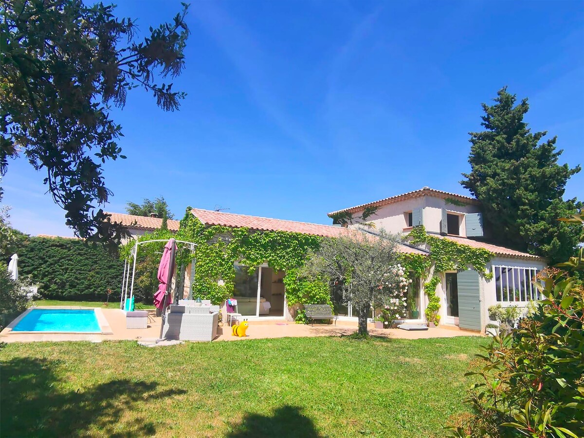 Tillbringa en vistelse, 2 minuter bort, lugn och avkopplande 10 minuter från Avignon, 30 minuter från Nîmes /Arles. Vandring, grönväg och provensalska byar i närheten. Mycket bekväm 60 m² uthus, kök utrustat med diskmaskin, blandugn, plancha, induktionshäll, Nespresso-kaffemaskin. 1 sovrum och 1 badrum med dusch. Utanför en terrass och rastplats runt poolen. Lakan tillhandahålls. Cyklister välkomna. Parkeringsplats och egen ingång.