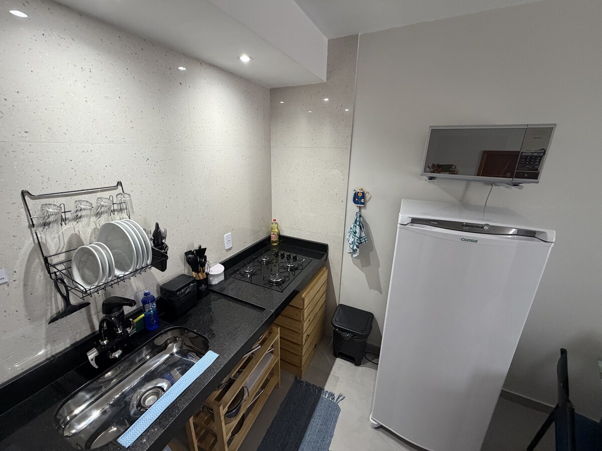 Loft inrett på ett praktiskt sätt för den som vill vila och njuta av skönheten i Arraial do Cabo hav. Den har luftkonditionering, takfläktar, kabel- och streaming-TV, wifi, kylskåp, spishäll, mikrovågsugn, luftfryer, elektrisk ugn, smörgåsgrill, blender, kaffebryggare, grundläggande köksredskap för att laga små måltider, dubbelsäng och en bäddsoffa. Byggnaden ligger 50 meter från Prainha. Parkeringen är roterande och det finns inga lediga platser för alla Lofts.