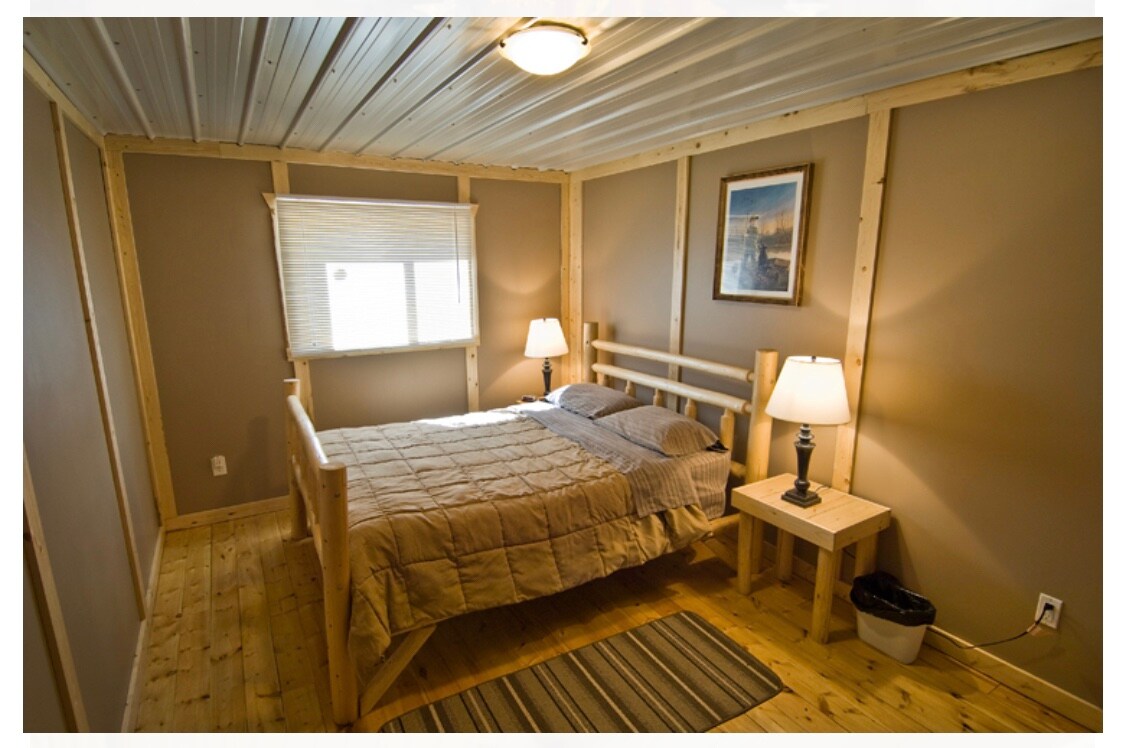 Kom och njut av din vistelse i vår rustika timmerstuga på vår bisonranch! Vår rymliga, mysiga och bekväma stuga ligger i ett perfekt läge bara 1 mile från motorvägen! Massor av utrymme för lek ute på gården och att ha brasor eller parkera din båt/quad/snöskotersläp! Det finns några olika sjöar som kan besökas inom en timme och mindre (Kipabiskau Lake 15 km, Barrier Lake 25 km, Marean Lake 45 km, Greenwater Lake 63 km)!