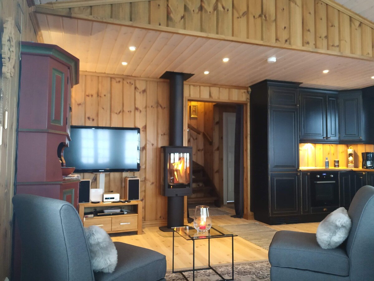 Unikt beläget i bergen - längs E6 - mitt i Oslo och Bergen. Stor modern stuga. Oslagbar utsikt i lugn, naturskön miljö. Utmärkt utgångspunkt för vandring året runt i magnifik Jotunheimen nationalpark. Borgund stavkyrka och flera historiska och natursköna sevärdheter en kort bit bort. Stor terrass för social mysighet med brasa och måltid utomhus. Öppen och familjevänlig layout, det perfekta stället att samla familj och vänner för minnesvärda upplevelser i bergen.