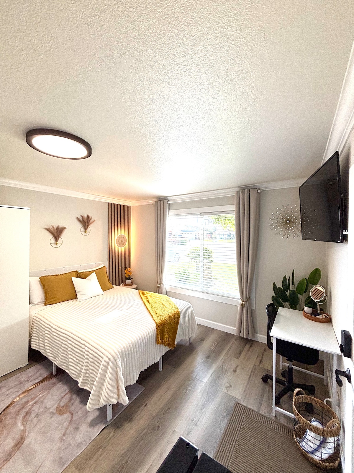 Denna eleganta nyrenoverade 1 BR in-law enhet har allt du behöver för att känna dig som hemma. Njut av en dubbelsäng, 55" smart-TV, mysig vrå med en dubbelsäng, tvättmaskin/torktumlare, nivå 2 EV-laddare, trädgård med blommor, grönsaker och fruktträd. Fullt utrustat pentry och matplats. Nära till midtown, downtown, Golden One, Cal Expo, Discovery Park, shopping, restauranger, motorväg och lätta järnvägar. Nära många sjukhus. Babyutrustning finns. Vandring och tillgång till floden i närheten. Dagsturer till SF, Tahoe, Napa och mycket mer.