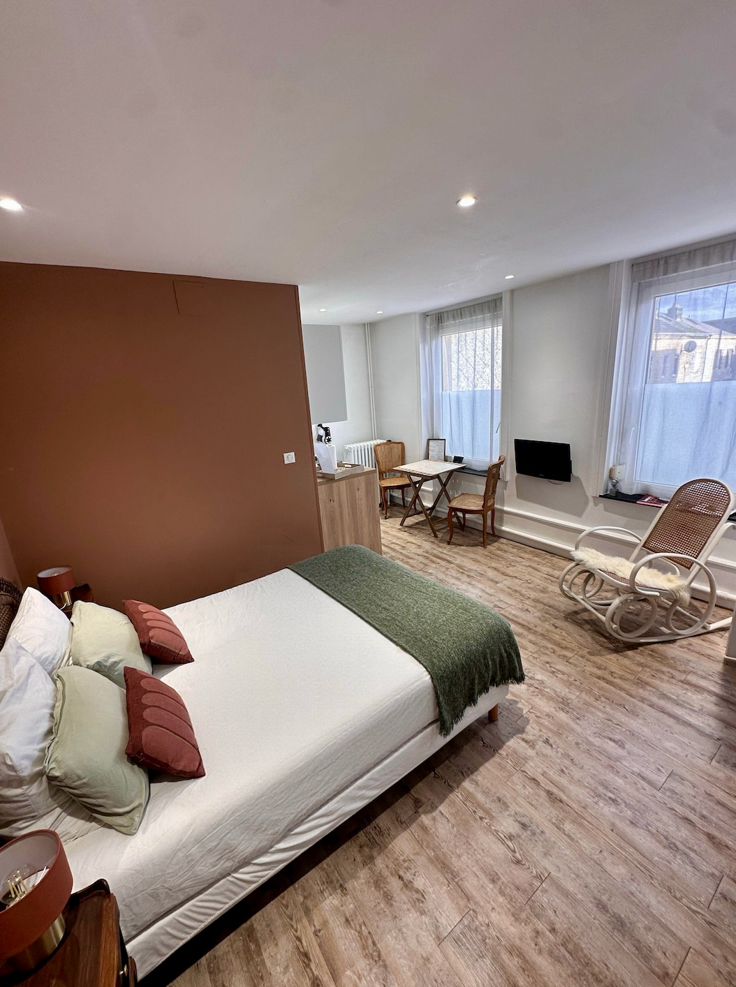 Staden nära till hands, naturen vid dina fötter. Suite 7 är en unik plats i en byggnad från 1935 där vintagecharm och modern komfort möts. Ger dig en fantastisk utsikt över stadshuset, nära alla bekvämligheter och den gröna vägen, helt renoverad för att erbjuda en kvalitetsvistelse, speciellt utrustad för musikälskare och erbjuder ytterligare tjänster (frukost, aperitifbrädor, champagne, kärlekslåda, cykeluthyrning)