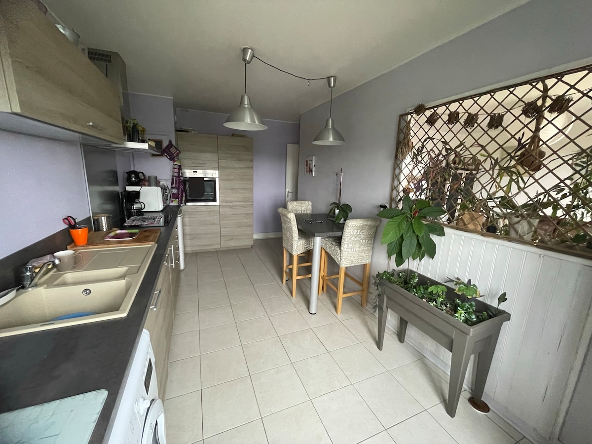 Privat och oberoende boende på golvet i mitt boende bestående av två sovrum, ett badrum med dusch och toalett, ett mycket nytt pentry och en matplats med utsikt över den privata terrassen. Det första sovrummet har en 140 dubbelsäng, det andra har också en cabriolet för ett eller två barn. Parkering på gatan är gratis, men kan vara komplicerad vid vissa tider på dagen. Det finns en stormarknad bil på 100 meter.