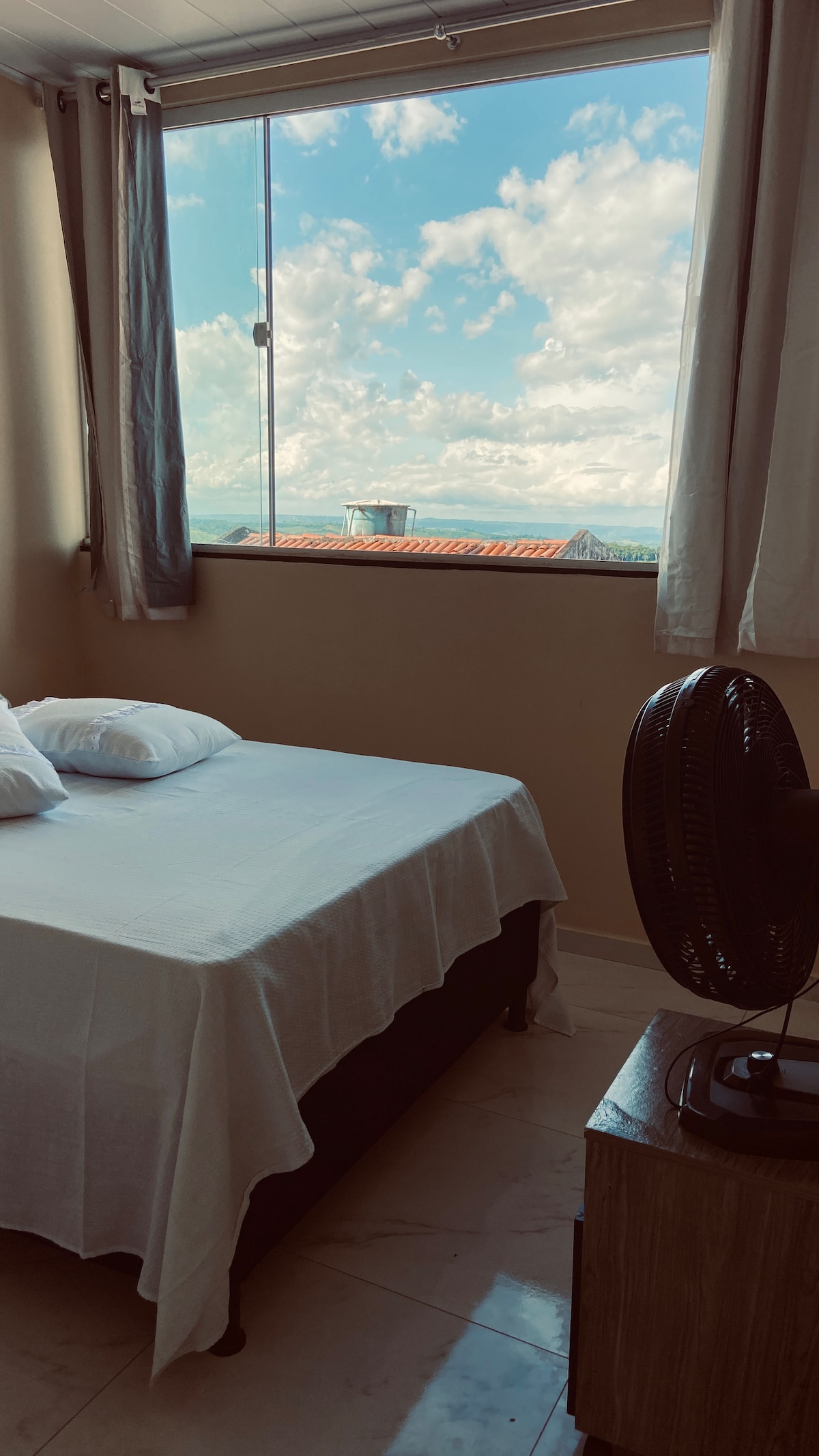 Privat rum med dubbelsäng i en mysig och väl inredd lägenhet. Utrymmet har ett ljust och bekvämt rum, en balkong med trevlig utsikt, samt Wi-Fi och TV. Köket och badrummet delas, alltid rena och organiserade. Utrymmet är perfekt för vila eller arbete, och har dessutom en vacker utsikt över Vale do Quebra. Välkomnande miljö och uppmärksamhet på detaljer för din bästa upplevelse.