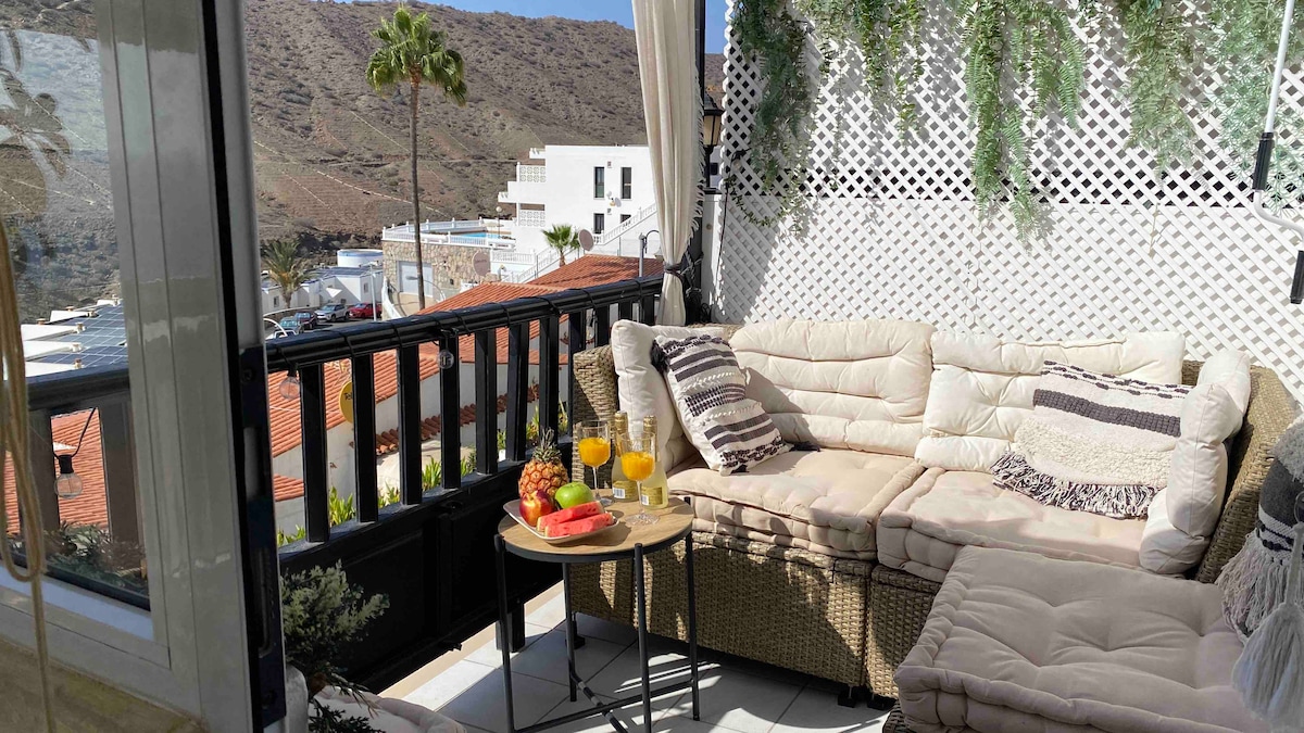 Nyrenoverad lägenhet med ett sovrum direkt på stranden i Arguineguin, med balkong med utsikt över havet och underbara solnedgångar! Var bland de första att njuta av denna vackra lägenhet i hjärtat av en autentisk kanarisk stad, precis intill stranden, i omedelbar närhet till de bästa restaurangerna, barer vid havet och shoppingalternativ. Lägenheten ligger på andra våningen i en liten byggnad med hiss, i första raden. Det är strängt rökfritt, max 2 gäster!